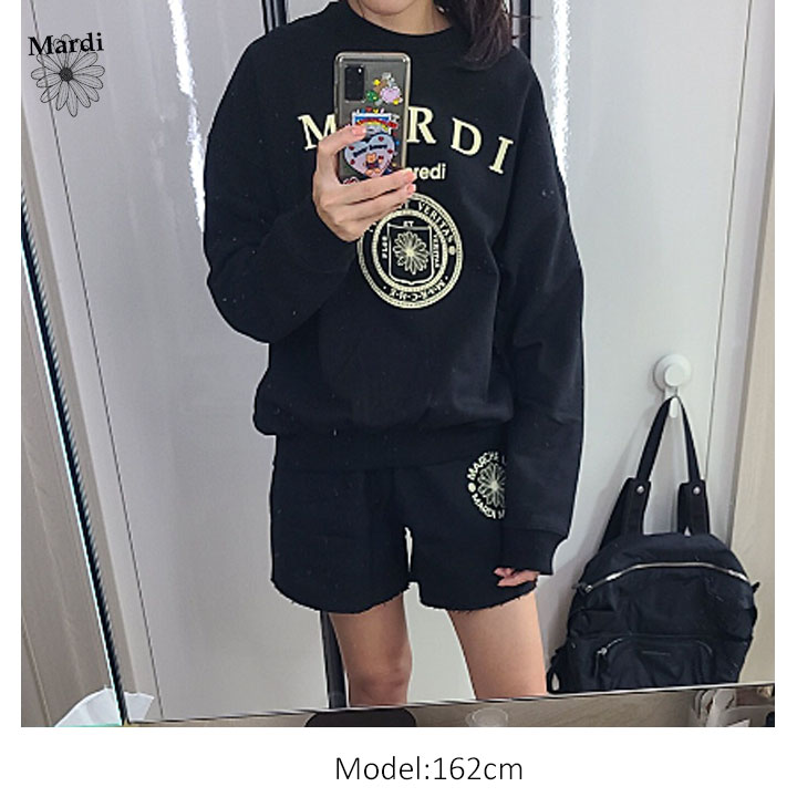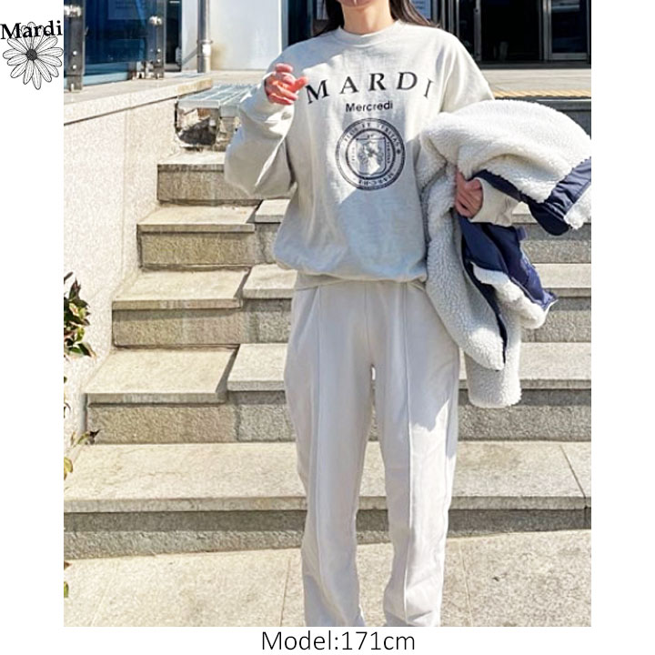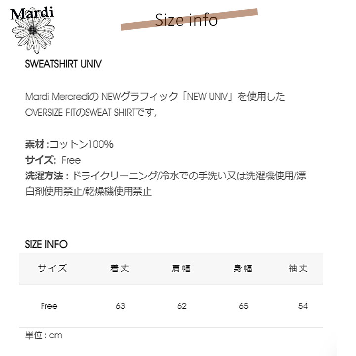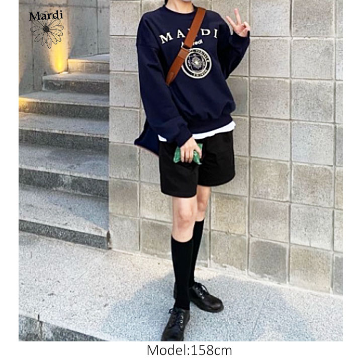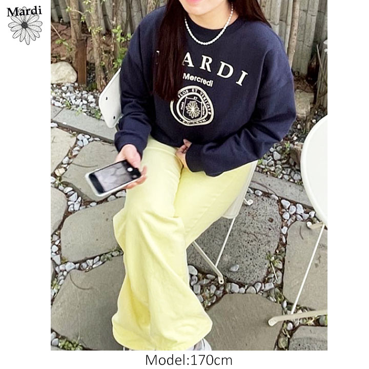 【即日配送カラーあり期間限定5%OFFセール】【韓国人気ブランド】【正規品付属の赤タグ・袋付き】 韓国ファッション マルディメクルディ Mardi Mercredi SWEATSHIRT UNIV レディース 長袖 ゆったり 大きめ スエット ストリートファッション 韓国人気ブランド