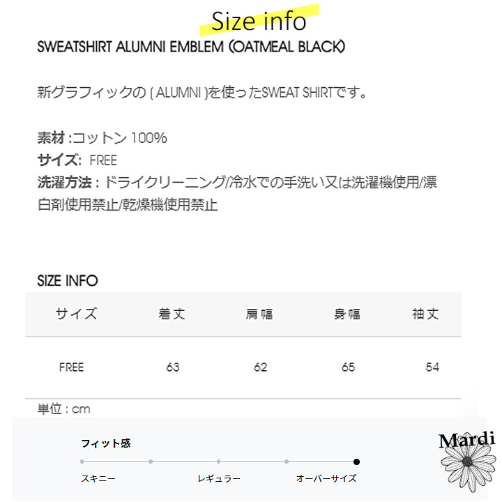 【【即日配送カラーあり期間限定5%OFFセール】】 【韓国人気ブランド】 【正規品付属の赤タグ・袋付き】 韓国ファッション マルディメクルディ Mardi Mercredi SWEATSHIRT ALUMNI EMBLEM レディース 長袖 ゆったり 大きめ スエット ストリートファッション 韓国人気ブランド