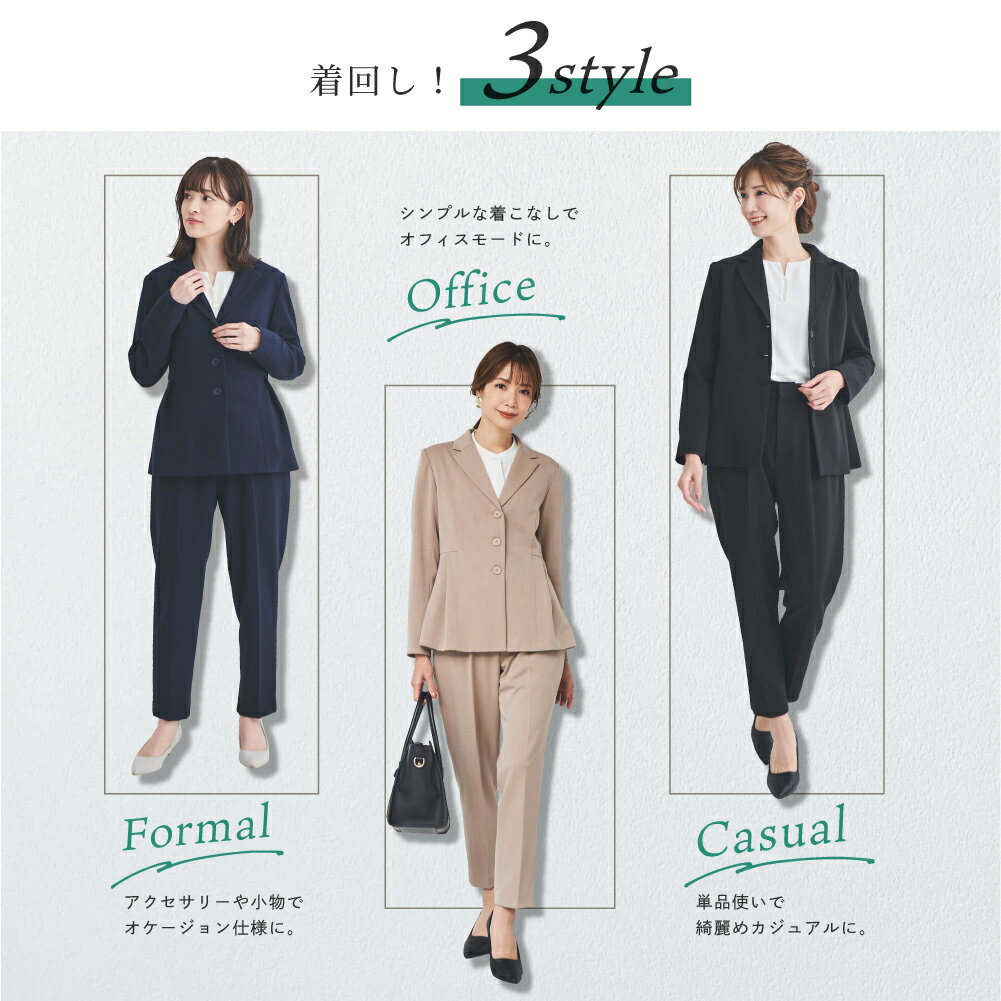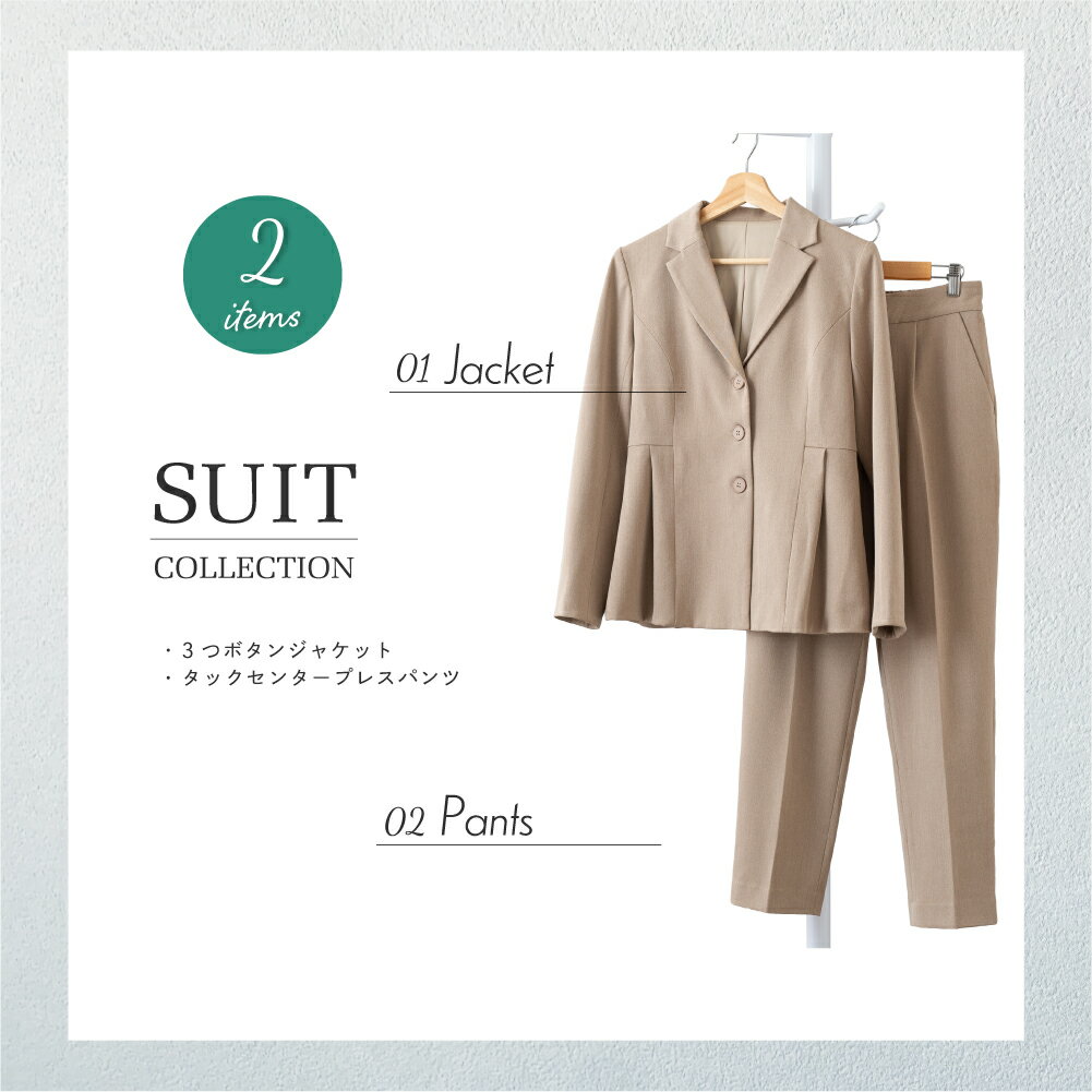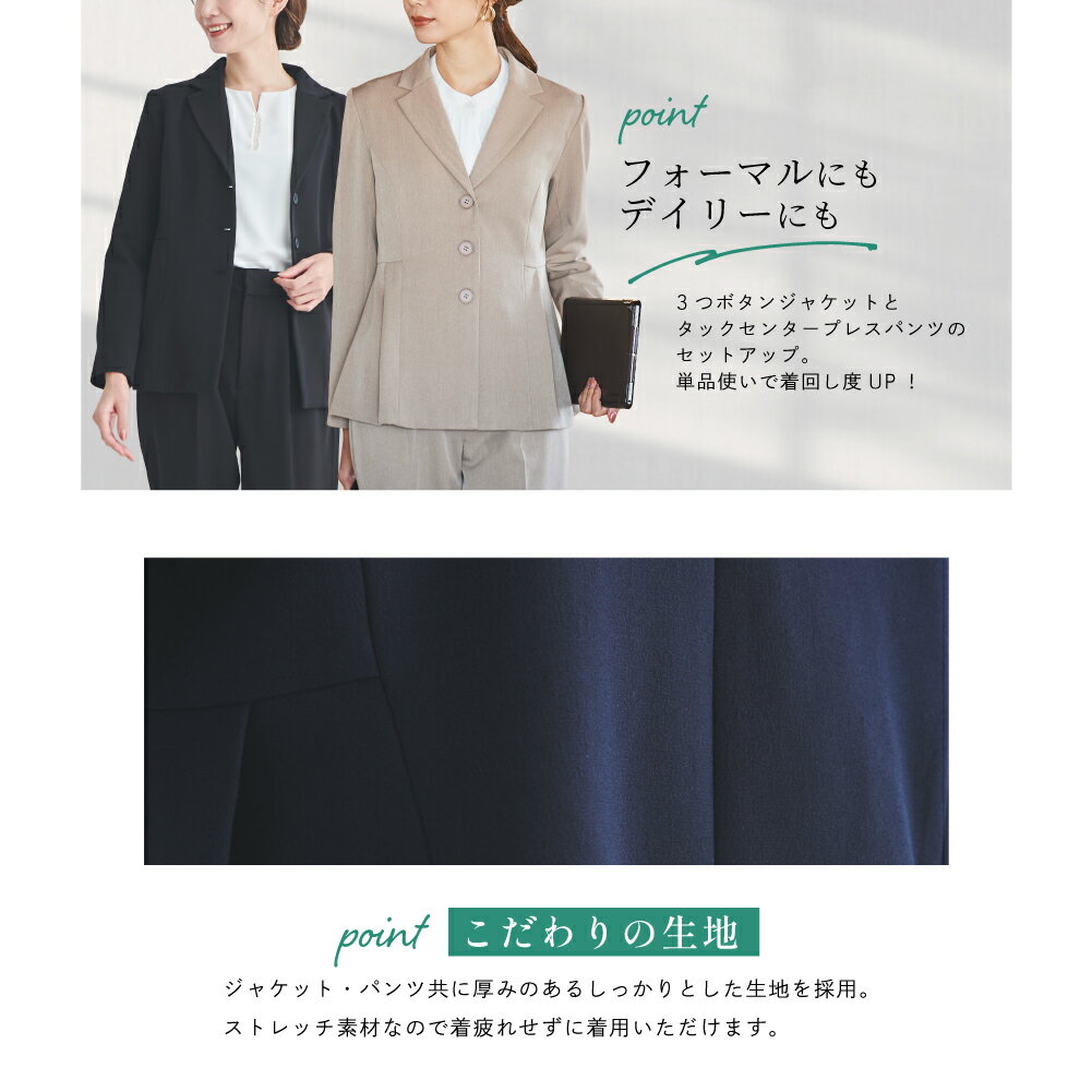 スーツ レディース セレモニースーツ セットアップ ジャケット パンツスーツ 洗える ウォッシャブル 2点セット テーパード タックセンタープレス 大人可愛い 高見え デイリー オフィス ビジネス 七五三 お受験 母 ママ ママスーツ 春 夏