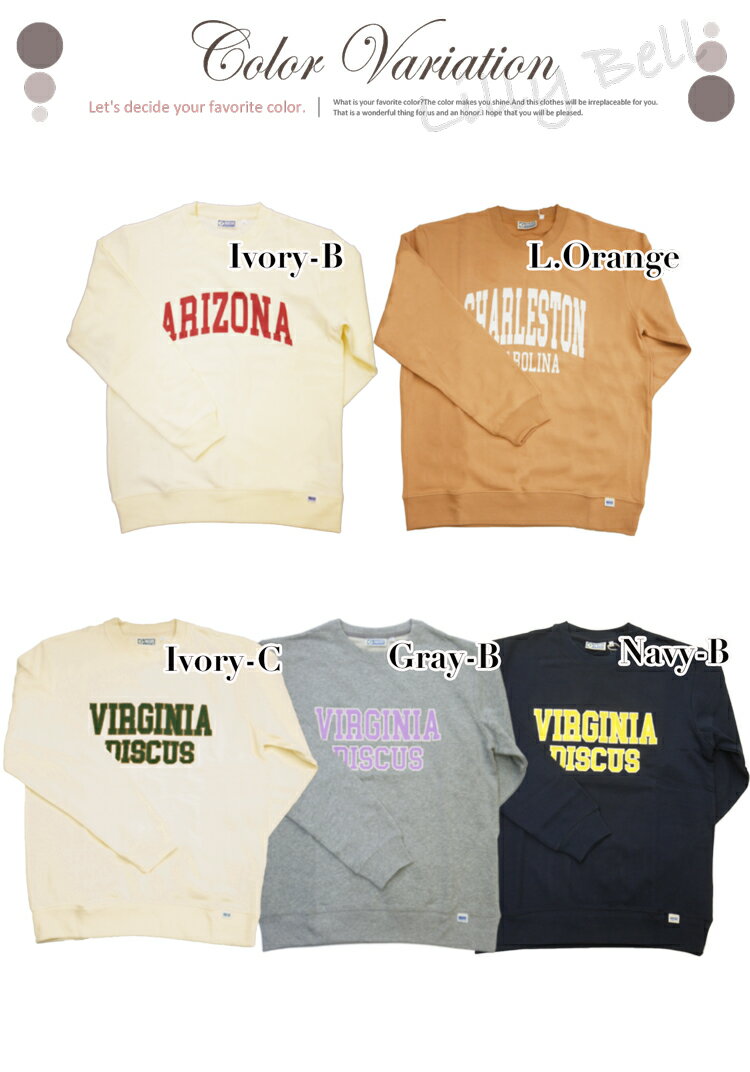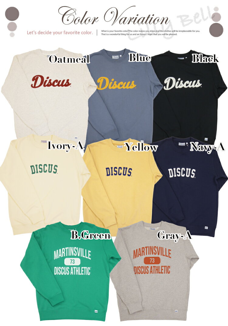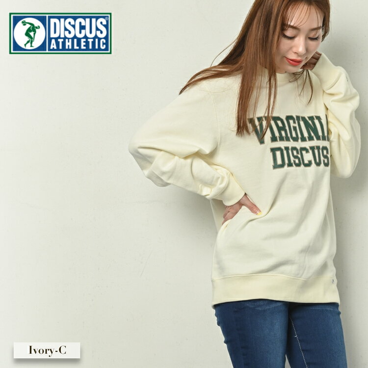 ディスカス カレッジロゴ トレーナー スウェット 上 レディース 春 秋 冬 ロゴ トップス プルオーバー usaコットン 綿 カジュアル オーバーサイズ 裏毛 長袖 クルーネック 白 紺 M/L