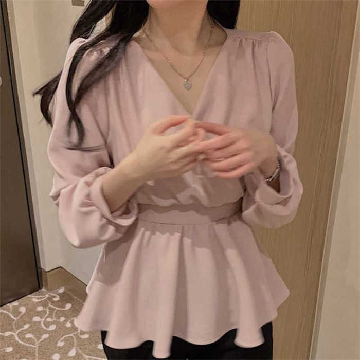 シャツ チュニック ブラウス 無地 Vネック シャツブラウス トップス レディース シフォン 長袖 ウエストマーク シンプル プルオーバー ウエストリボン リボン 春 秋 ゆったり 着瘦せ 体型カバー 大人 エレガント おしゃれ 20代 30代 40代 カジュアル 通勤 OL 送料無料