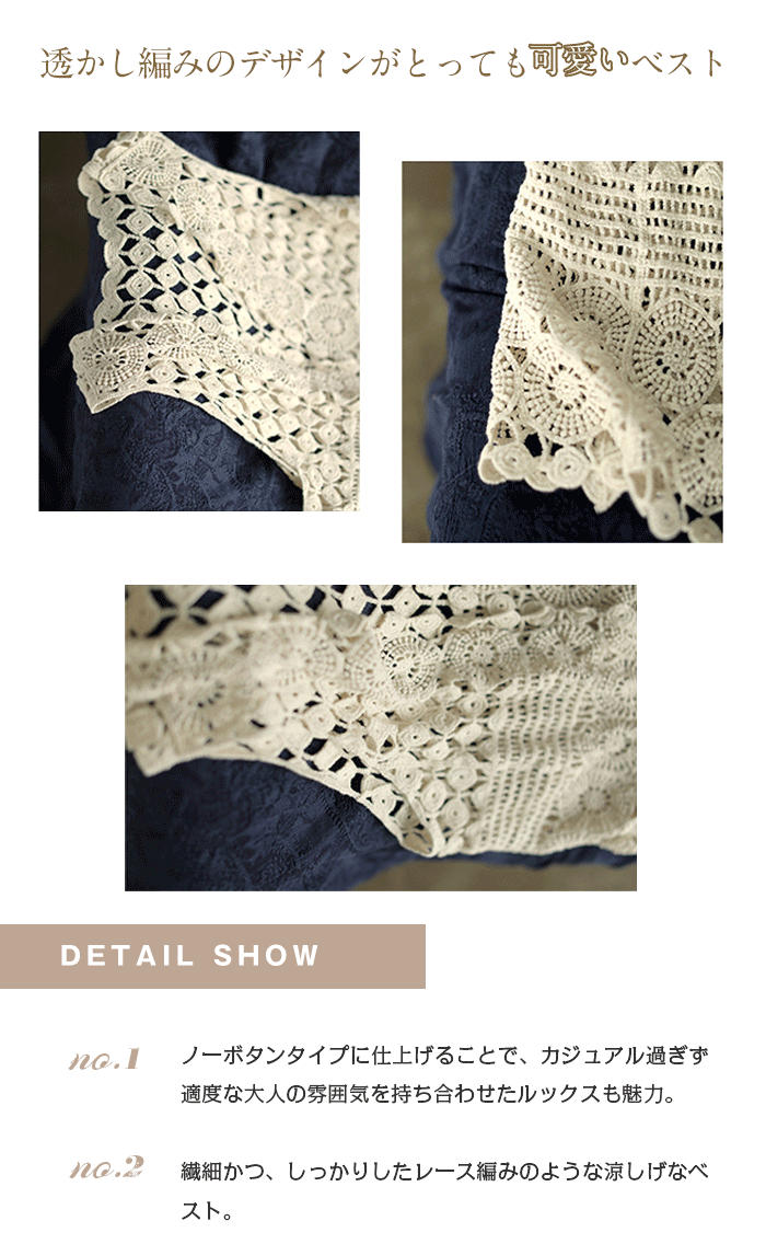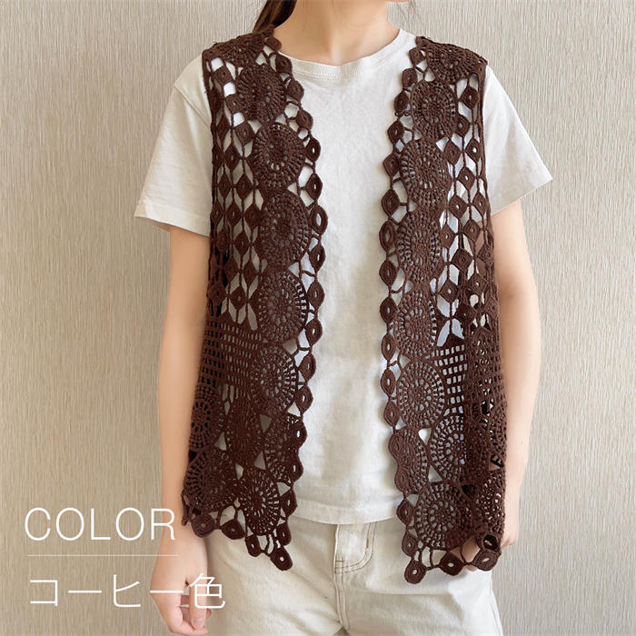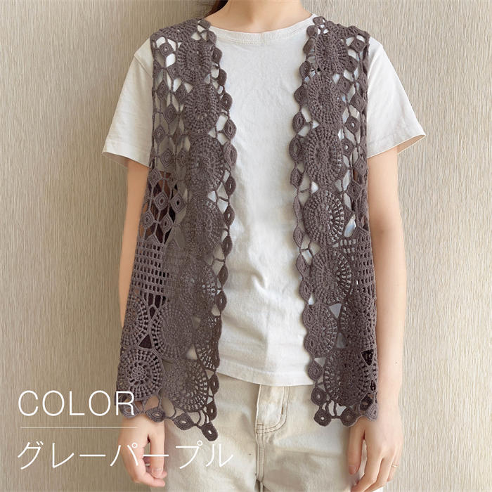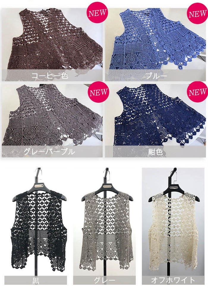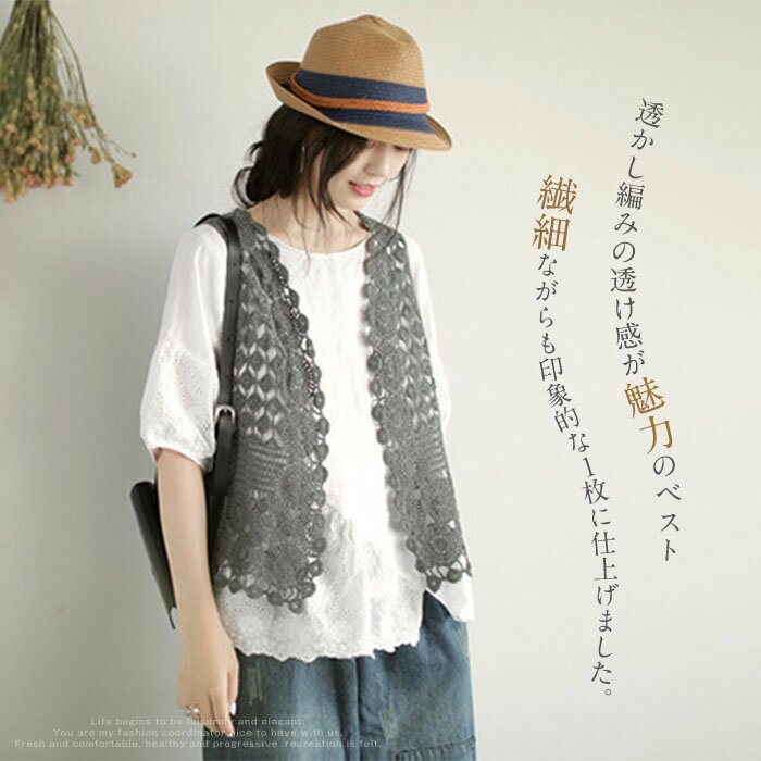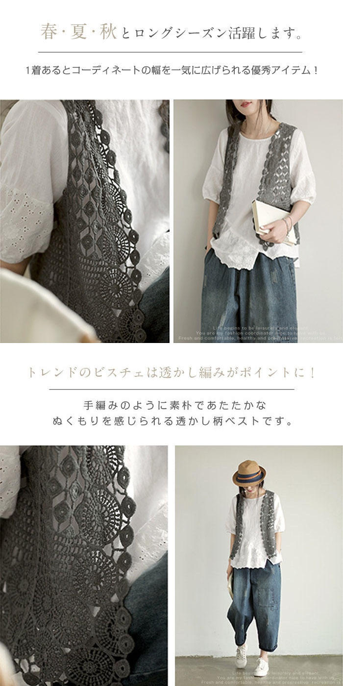 「期間限定SALE★1980→1780円」 ベスト レディース おしゃれ サマー ベスト レディース ジレ ベスト ニット ベスト 前開き トップス 大きいサイズ ジレ ベスト 春夏 夏 ショート丈 花柄 春ベスト 透かし編み 重ね着 カジュアル 総柄 通勤 OL 可愛い 黒 グレー 送料無料