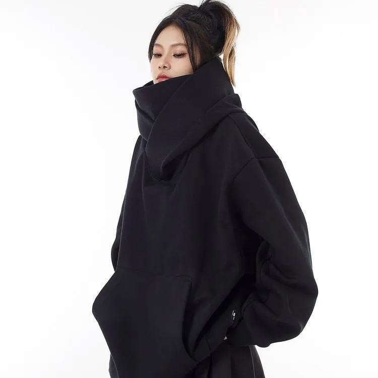 ボリュームネック パーカー レディース メンズ 男女兼用 裏起毛 パーカー ハイネックパーカー 春 秋 冬 スウェット フード付き ビッグパーカー 防寒 保温 プルオーバーパーカー オーバーサイズ タートルネック 無地 ゆったり ストリート系