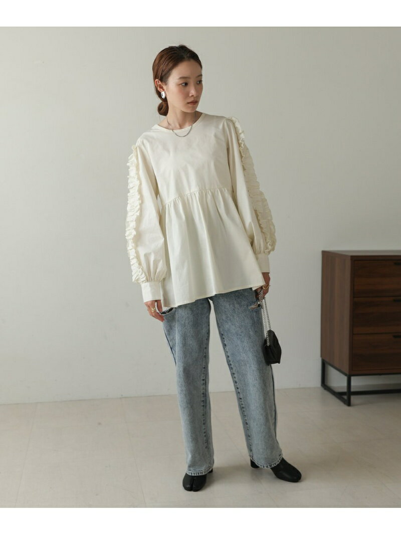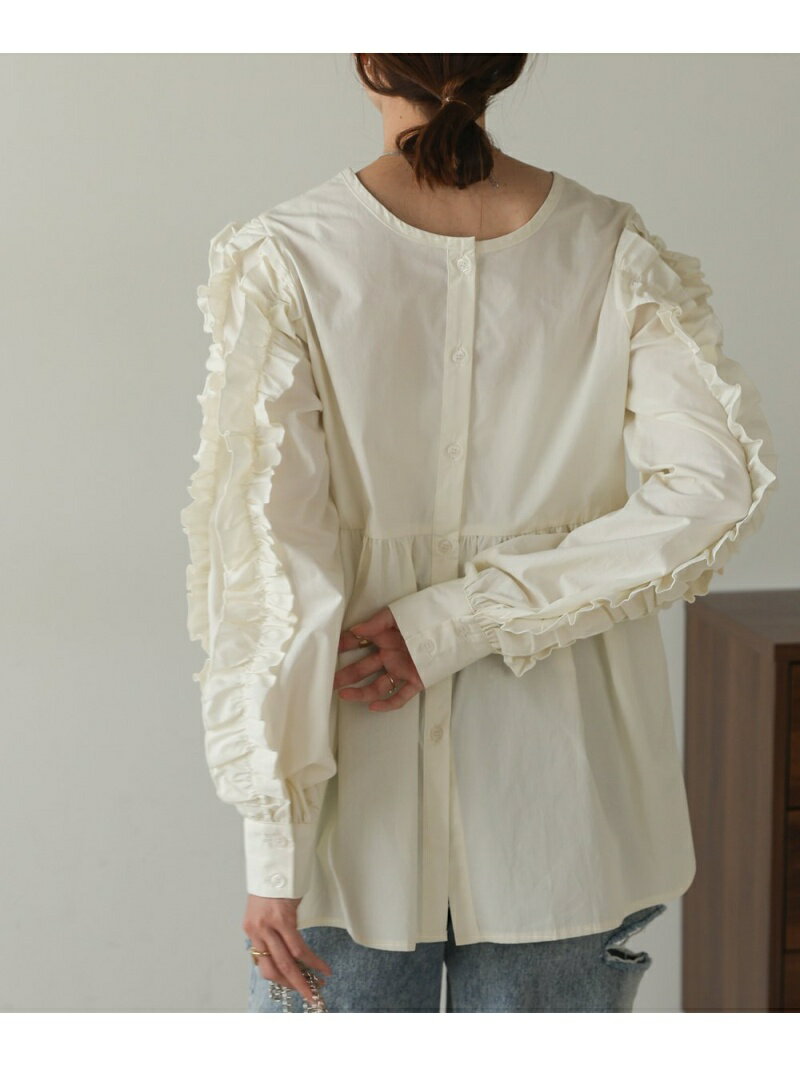 【SALE/40%OFF】フリルボリュームスリーブブラウス Bab バブ / ブージュルード トップス その他のトップス ホワイト ベージュ ブルー【RBA_E】[Rakuten Fashion]