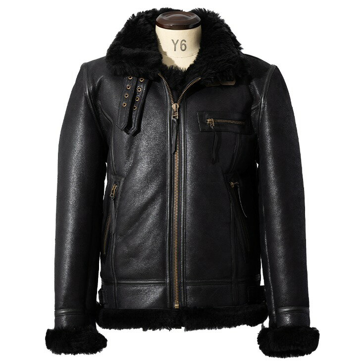 Liugoo Leathers 本革 B-3タイプライダース ムートンジャケット メンズ リューグーレザーズ SRYMT01 シングルライダース ライダースジャケット レザージャケット 革ジャン 皮ジャン ダブルライダース 本革ジャケット ブラック 黒