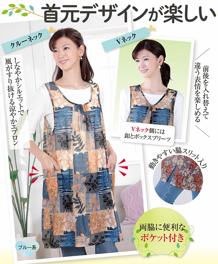 セルヴァン さらっと2wayデザインチュニック 2種類の首元デザインが楽しめるチュニックエプロン メール便送料無料
