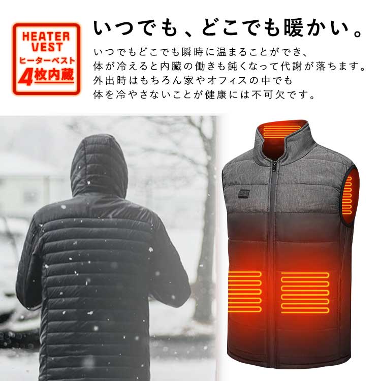 ヒーターベスト ヒーター 4枚内蔵 電熱ベスト ヒートベスト 大きいサイズ アウトドア 防寒着 ベスト USB バイクウェア 男女兼用 手洗い チョッキ 登山 電気ベスト 釣り プレゼント せいじ