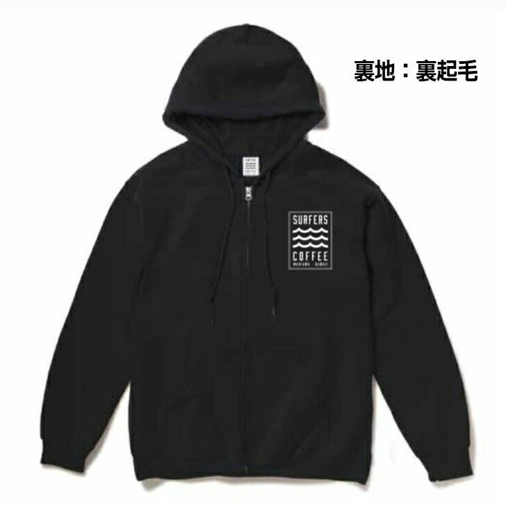 【SURFERS COFFEE バックロゴ ジップパーカー】 サーファーズコーヒー パーカー トレーナー ジップパーカー ブラック ファッション ハワイ