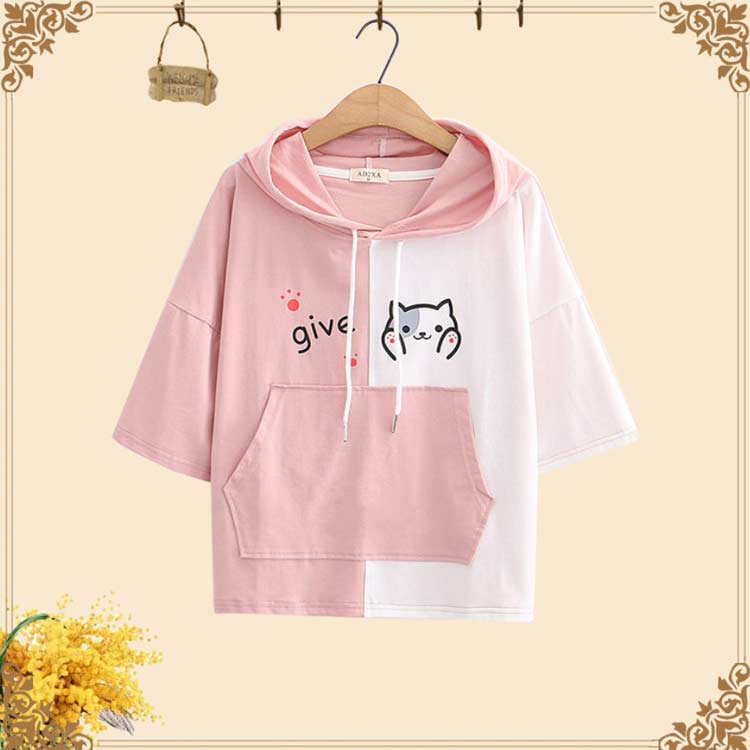 半袖 パーカー レディース 半袖パーカ 夏 フード付き tシャツ 半袖Tシャツ ビッグパーカー プルオーバー トップス 学生 乙女 女子高生 通学 通勤 大きいサイズ 可愛い 薄手 おしゃれ カジュアル