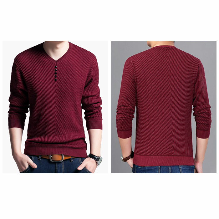 ニット セーター メンズ 定番 スリムニット シャツ ニットセーター プルオーバー Vネック 長袖 ラウンドネック ボタン 無地 シンプル 春 秋 冬 トップス 紳士