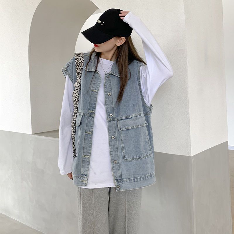 オーバーサイズ デニムベスト 重ね着 レディース ジーンズベスト ゆったり ノースリーブ カジュアル アウター 羽織り おしゃれ 春夏 レディース 韓国ファッション