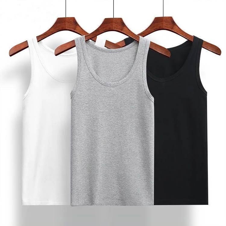 スポーツ ノースリーブ ホワイト 袖なし 無地 伸縮性 3枚セット メンズ フィットネス ストレッチ Uネック Tシャツ 夏 インナートップス 抗菌 消臭 肌着 コットン タイト 綿 ジム スポーツウエア 運動着 黒 白 ブラック タンクトップ