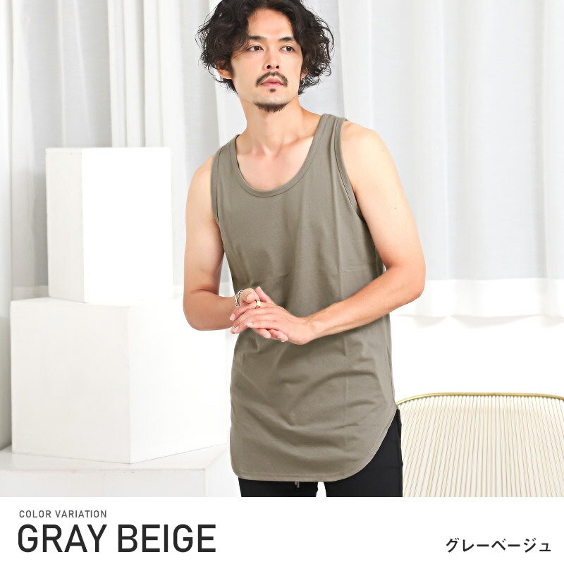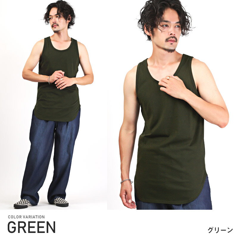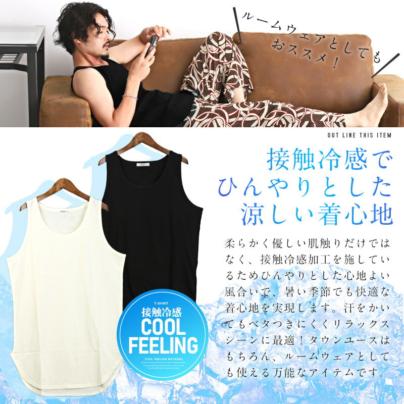 タンクトップ メンズ ロング丈 ビッグシルエット 接触冷感 ひんやり 無地【接触冷感BIGタンクトップ】メンズタンクトップ インナー レイヤード 重ね着 ルーズ クルーネック ラウンドヘム シンプル 涼しい カジュアル ストリート 夏 aa-2653