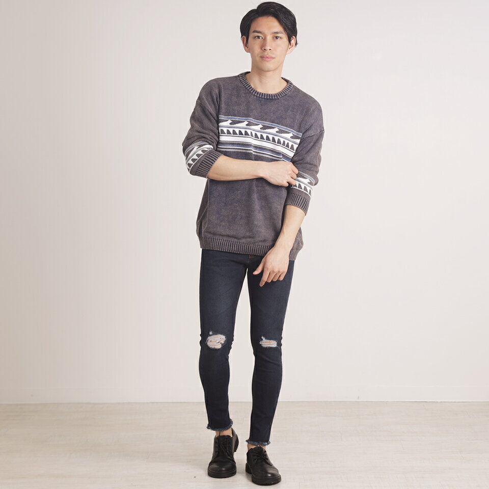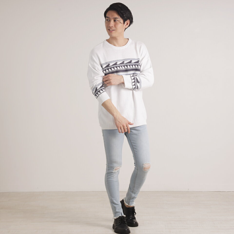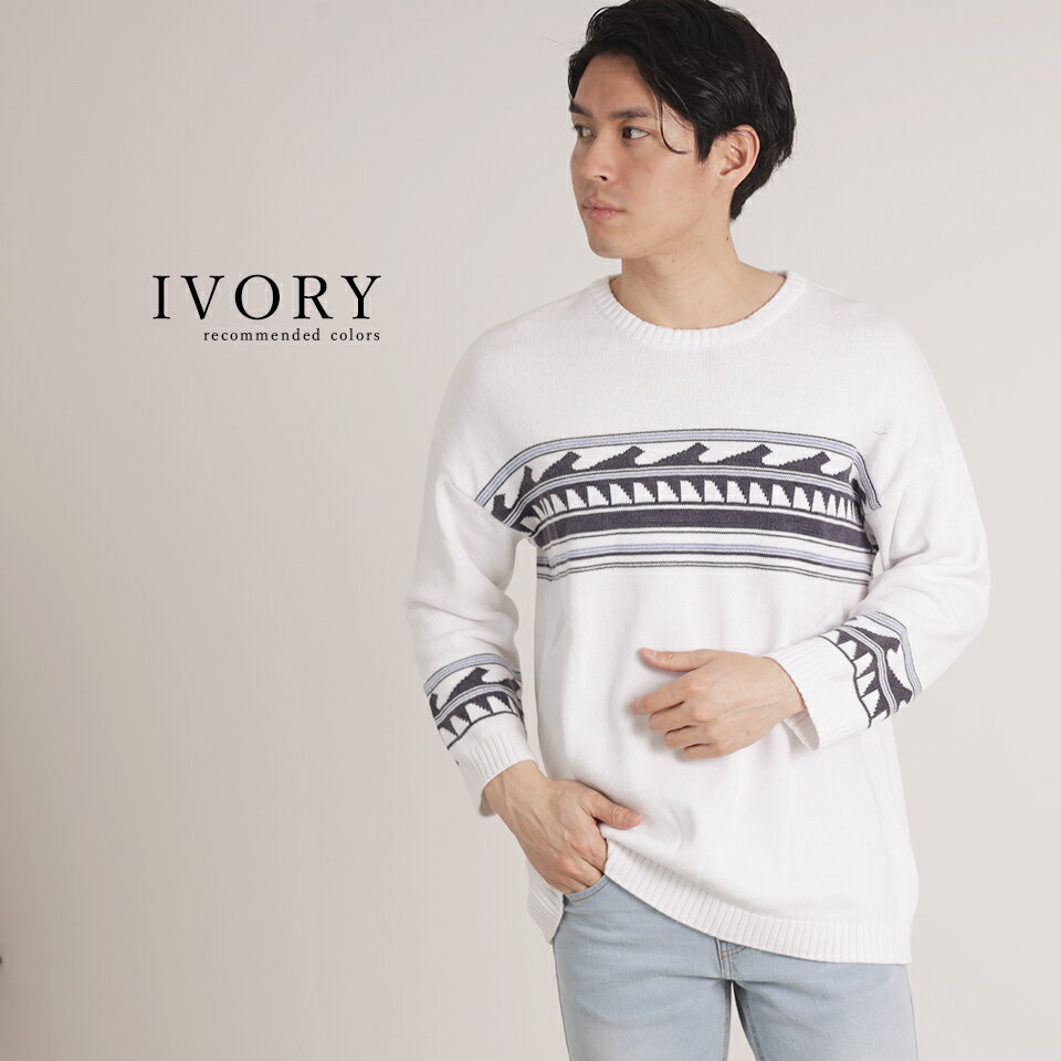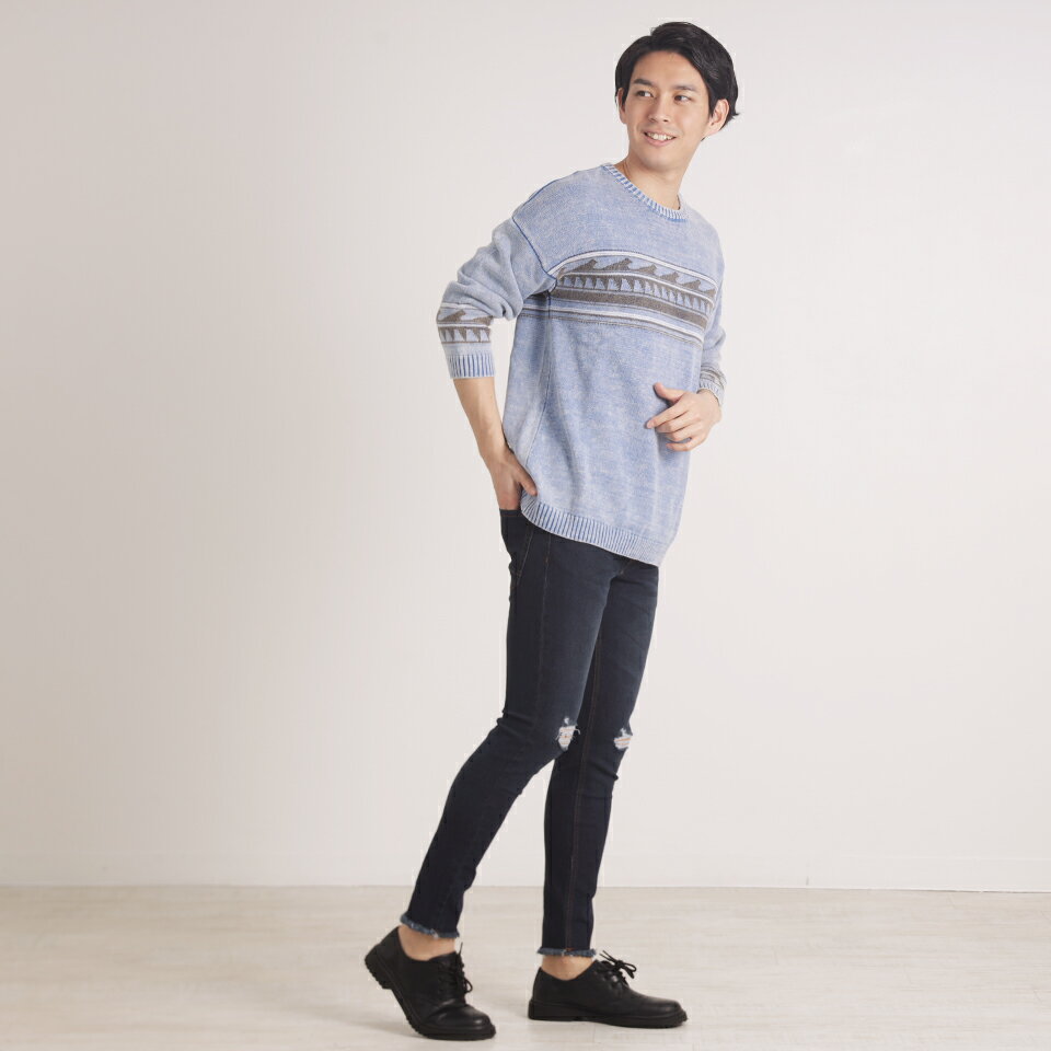 ジャガードクルーネック8分袖ニット ニット 春ニット 春 春コーデ 海 西海岸 サーフ系 ビター お兄系 サファリ ハーマン メンズニット メンズファッション セール 激安