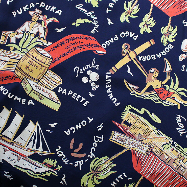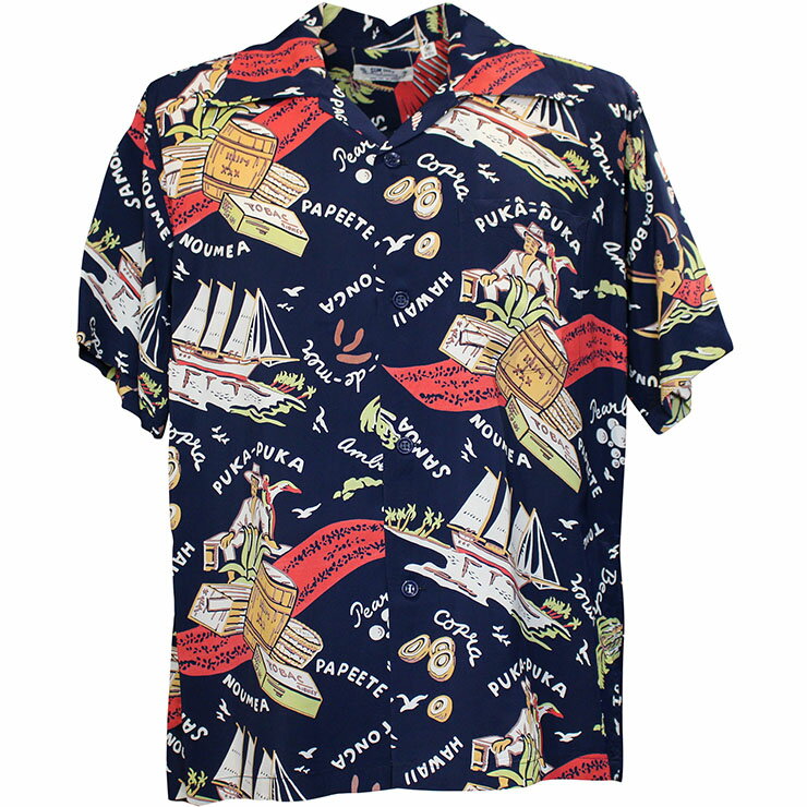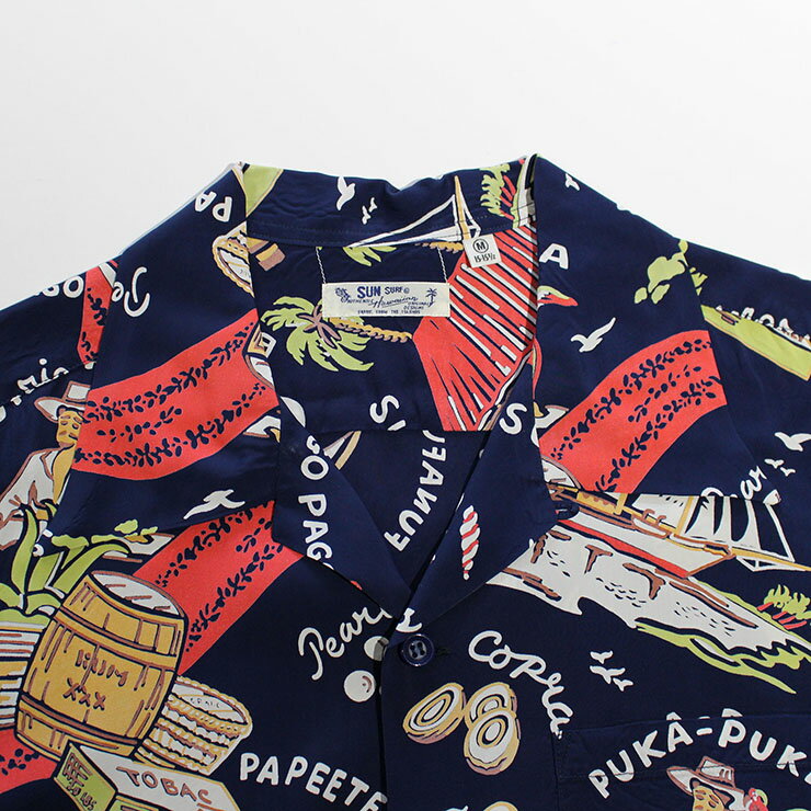 SUN SURF(サンサーフ)アロハシャツ HAWAIIAN SHIRT『SOUTH SEA TRADER』SS39223-128 Navy|50s復刻柄 メンズ 開襟シャツ|ヴィンテージ風 ハワイアン レーヨンシャツ 半袖|リゾートシャツ おしゃれ 夏コーデに|送料無料
