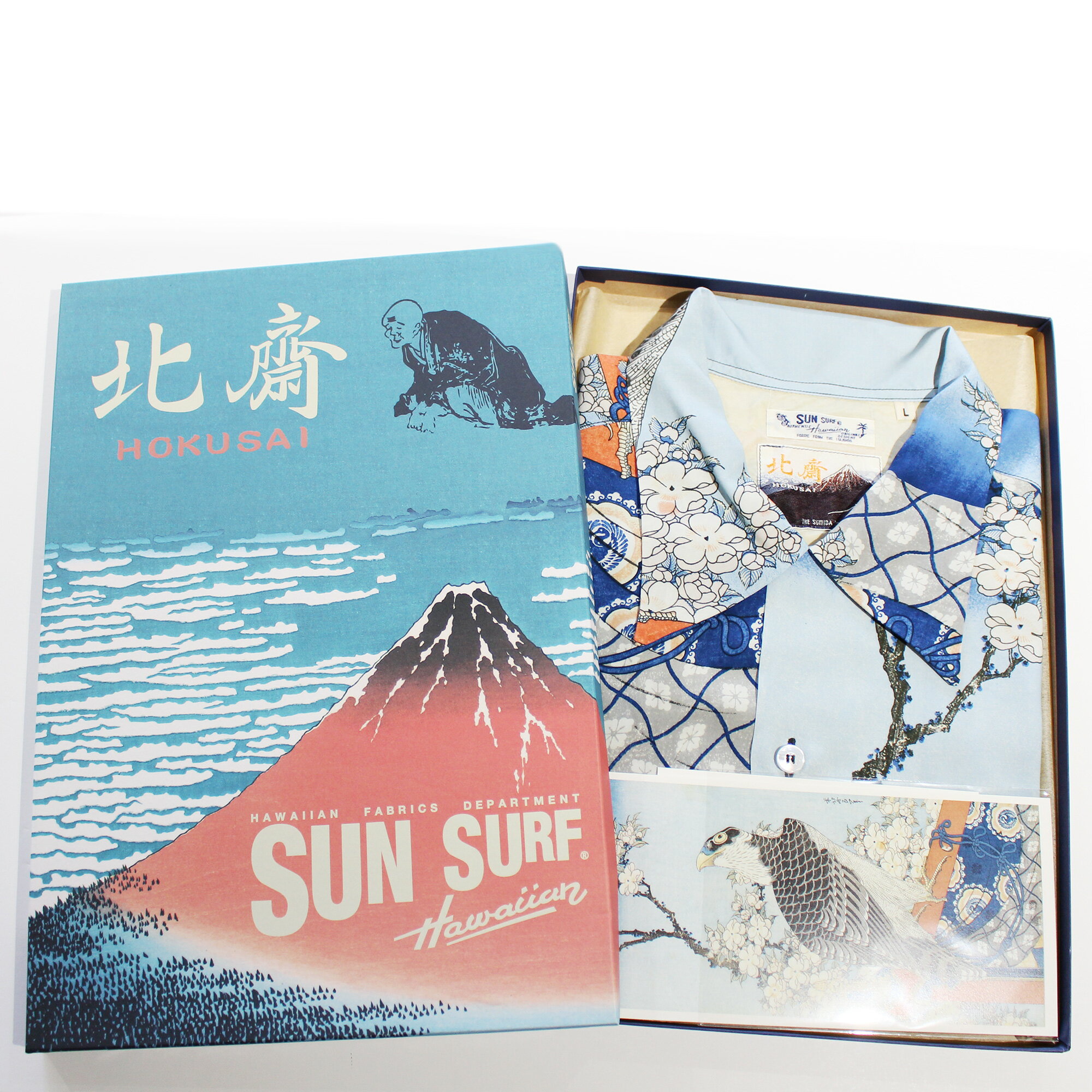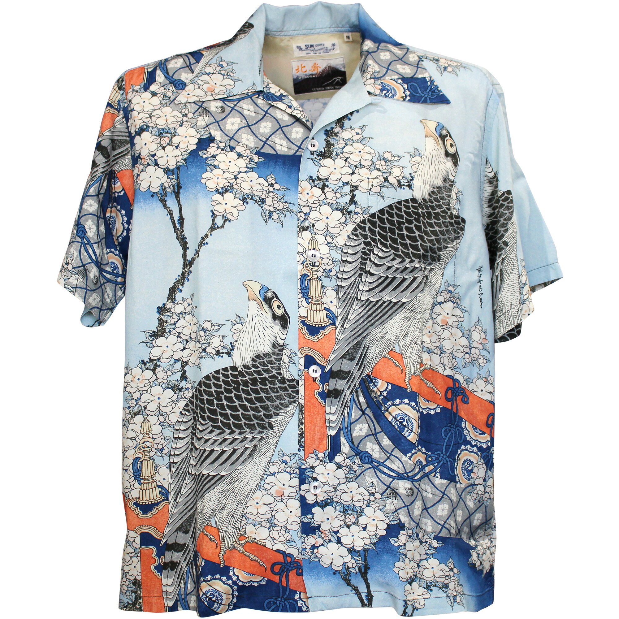 SUN SURF(サンサーフ×葛飾北斎)アロハシャツ HAWAIIAN SHIRT『日本の意匠/桜花に鷹図』SS39327-125 Blue