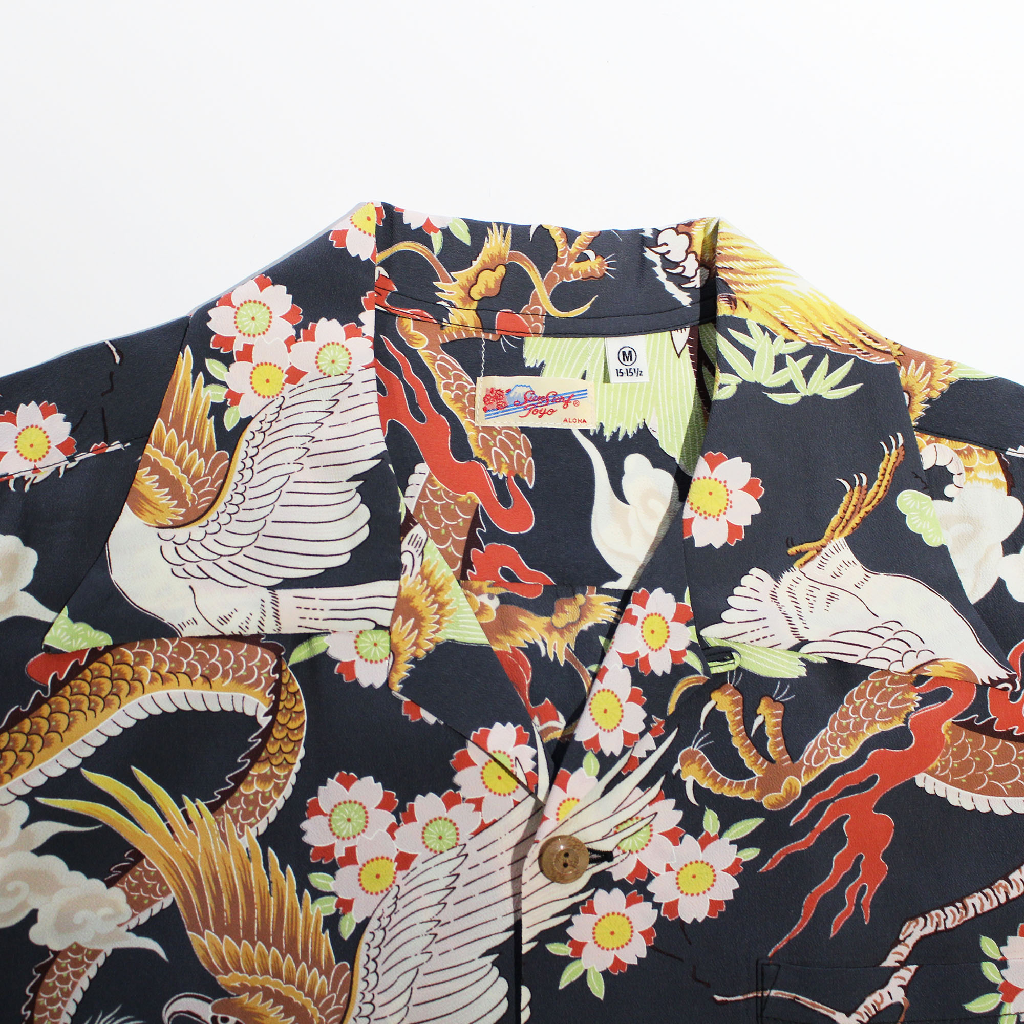 [2025SS新作!]SUN SURF(サンサーフ)アロハシャツ HAWAIIAN SHIRT『THE TRIANGULAR FIGHT』SS39414-119 Black|50s復刻柄 メンズ 開襟シャツ|ヴィンテージ風 ハワイアン レーヨンシャツ 半袖|リゾートシャツ おしゃれ 夏コーデに|送料無料