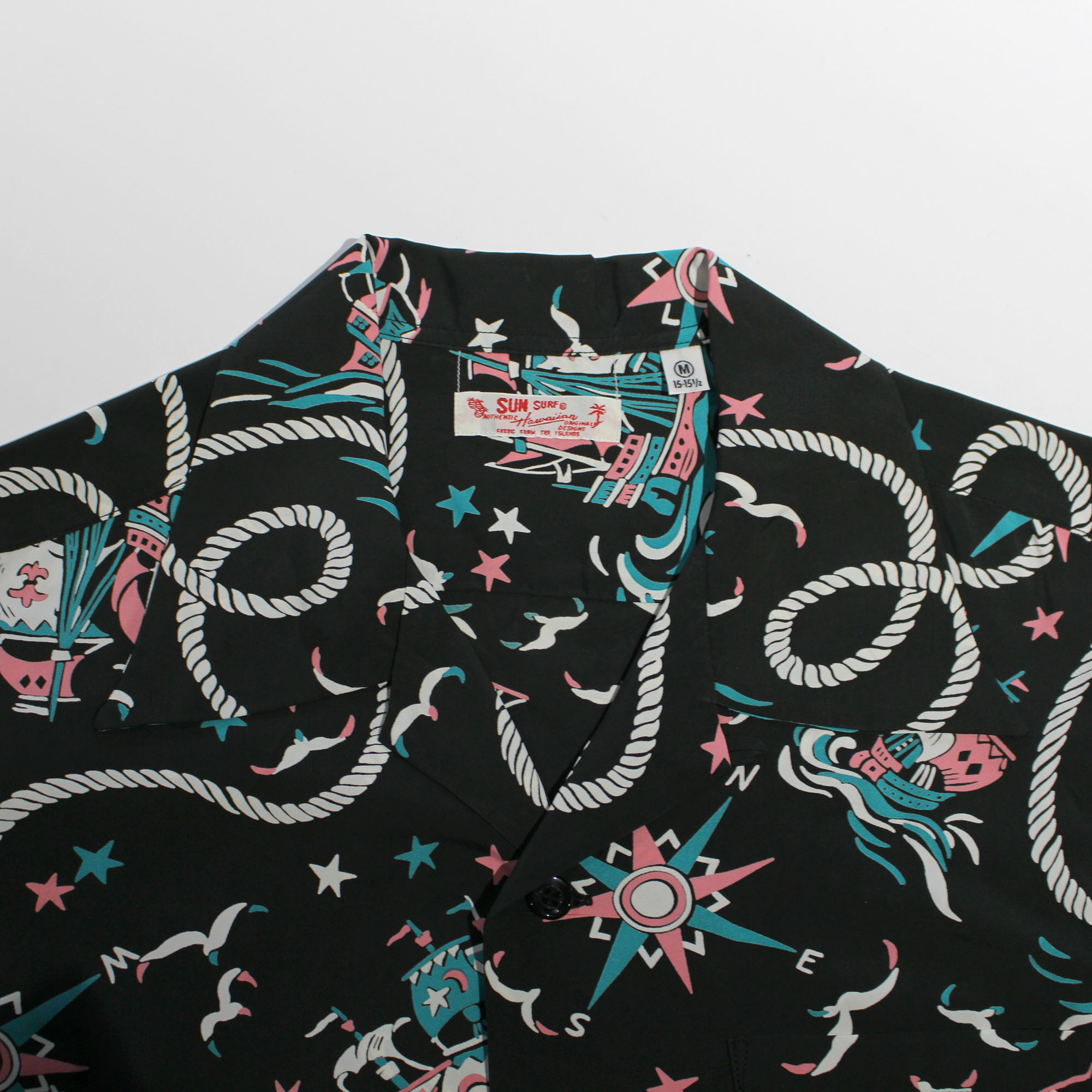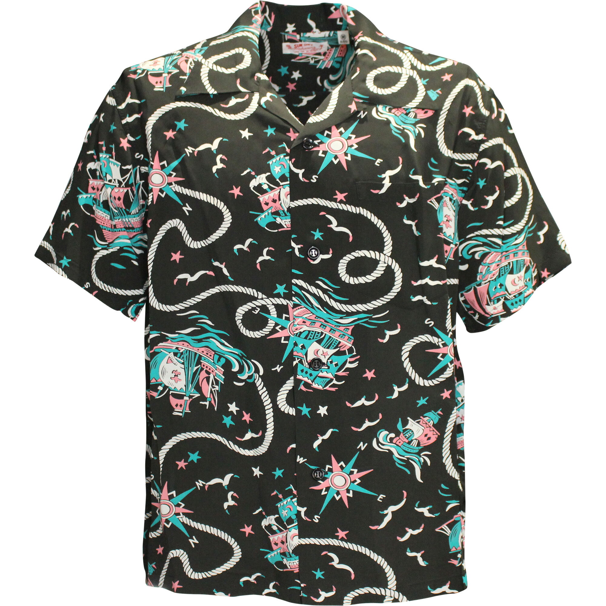[2025SS新作!]SUN SURF(サンサーフ)アロハシャツ HAWAIIAN SHIRT『AGE OF DISCOVERY』SS39429-119 Black|50s復刻柄 メンズ 開襟シャツ|ヴィンテージ風 ハワイアン レーヨンシャツ 半袖|リゾートシャツ おしゃれ 夏コーデに|送料無料