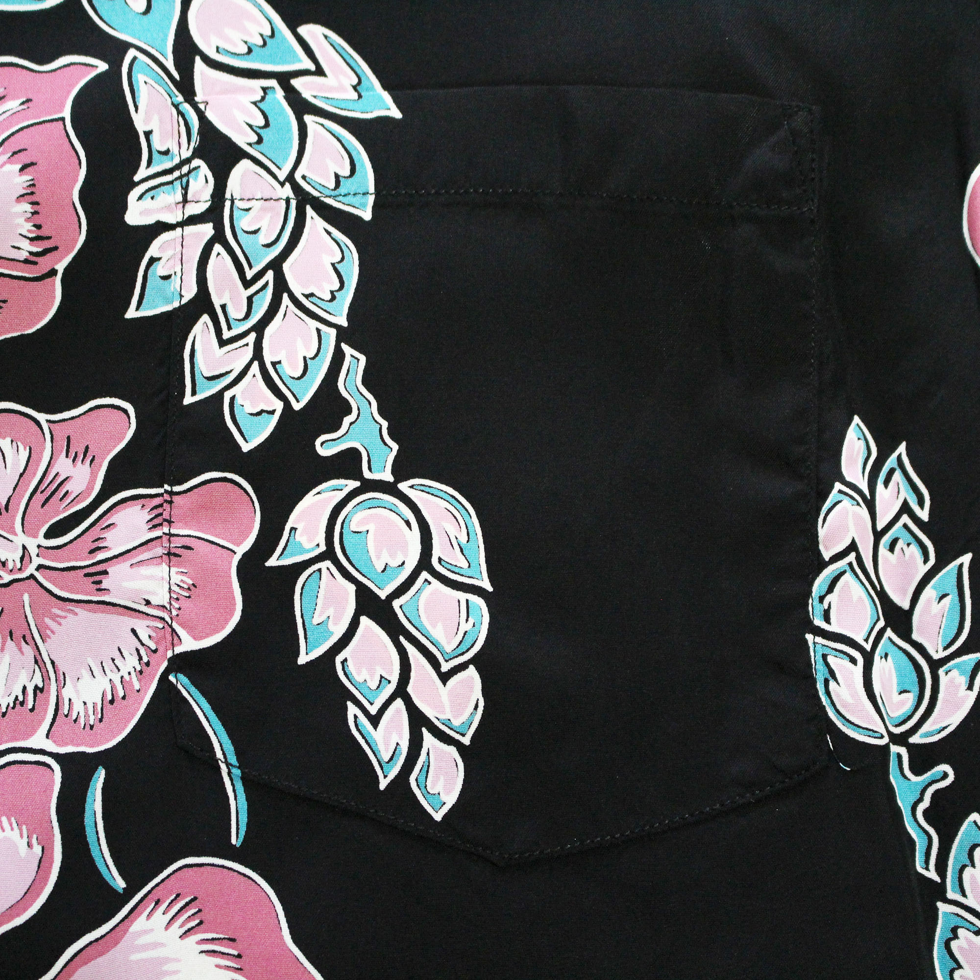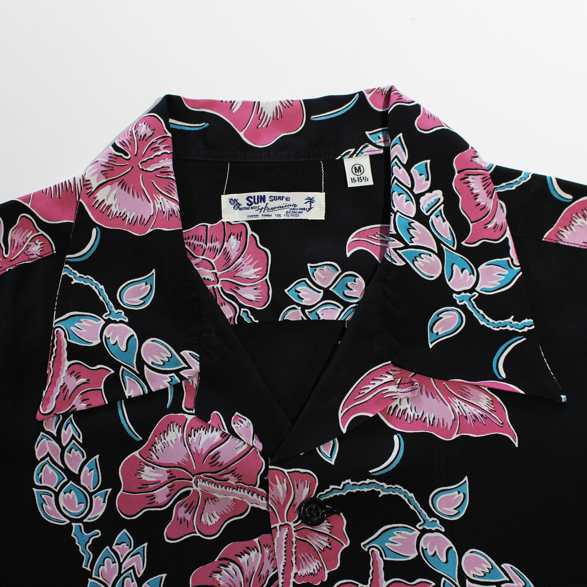 [2025SS新作!]SUN SURF(サンサーフ)アロハシャツ HAWAIIAN SHIRT『ISLAND FLOWER CHAIN』SS39425-119 Black|50s復刻柄 メンズ 開襟シャツ|ヴィンテージ風 ハワイアン レーヨンシャツ 半袖|リゾートシャツ おしゃれ 夏コーデに|送料無料