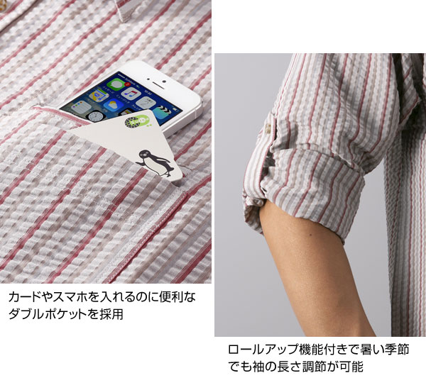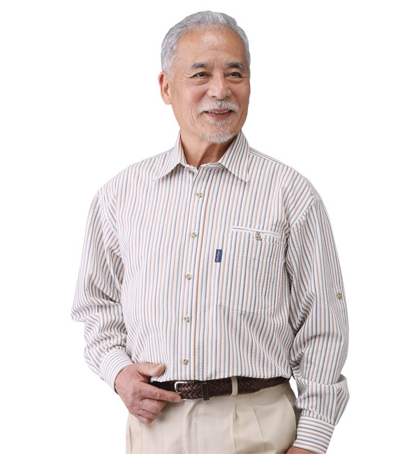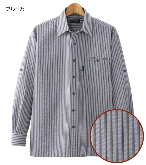 長袖シャツ 3色組 サッカー生地 ストライプ柄 メンズ ダブルポケット 袖ロールアップ 春夏秋 50代 60代 URBAN EXPRESS アーバンエクスプレス C909151-SAI