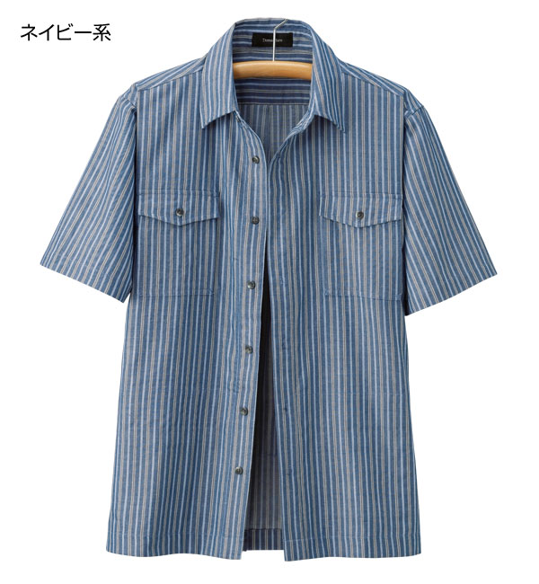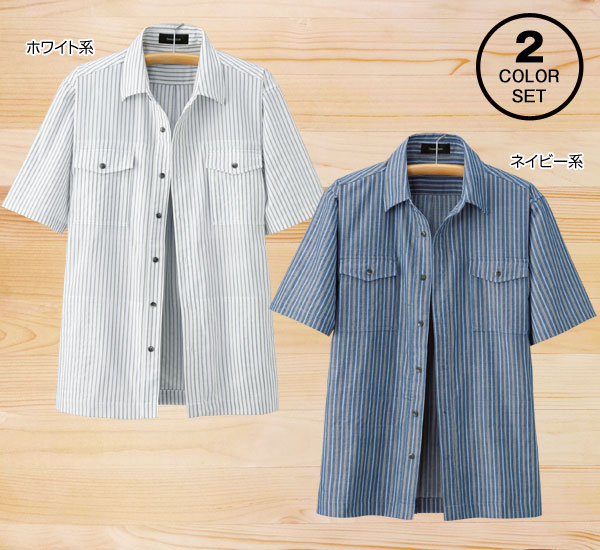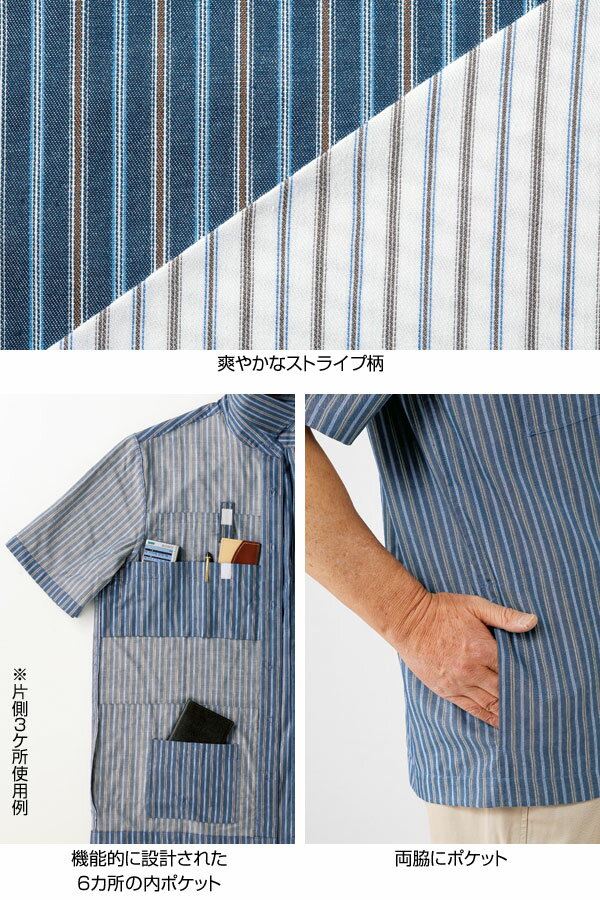 メンズ 半袖 10ポケットストライプシャツジャケット 2色組 ストライプ柄 10ポケット シャツジャケット 春夏 50代 60代 957443