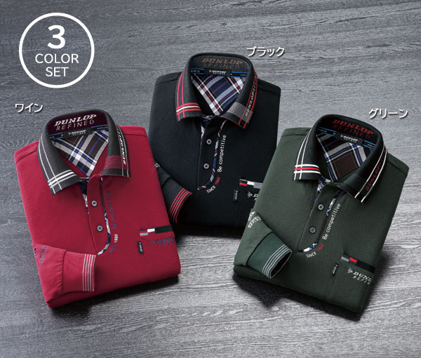 新大人のこだわりデザインポロシャツ 同サイズ3色組 DUNLOP ダンロップ・リファインド ジャカード衿 春夏秋 40代 50代 60代 957734