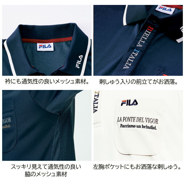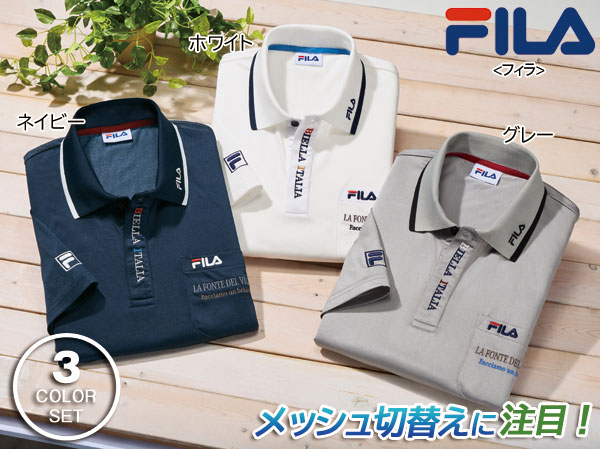 吸汗速乾前立て刺繍入りポロシャツ FILA フィラ同サイズ3色組 FILA スポーティなポロ メッシュ素材 メンズ 春夏秋 40代 50代 60代 957944
