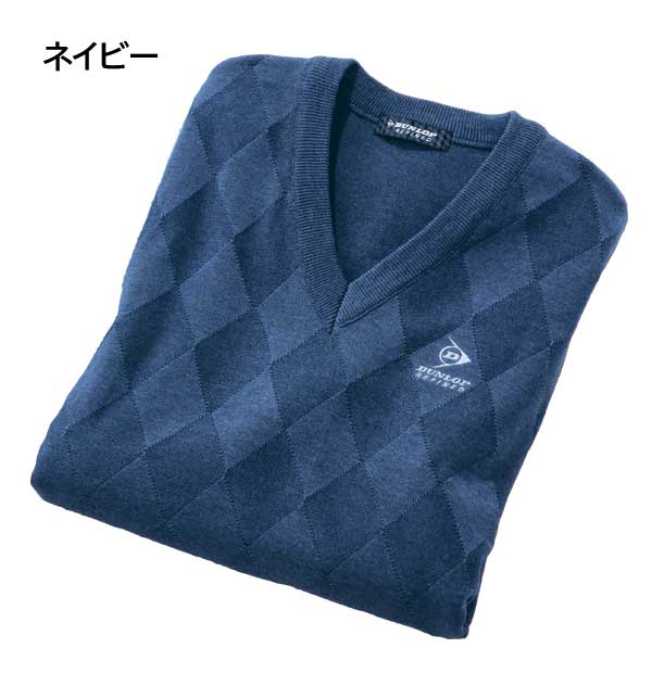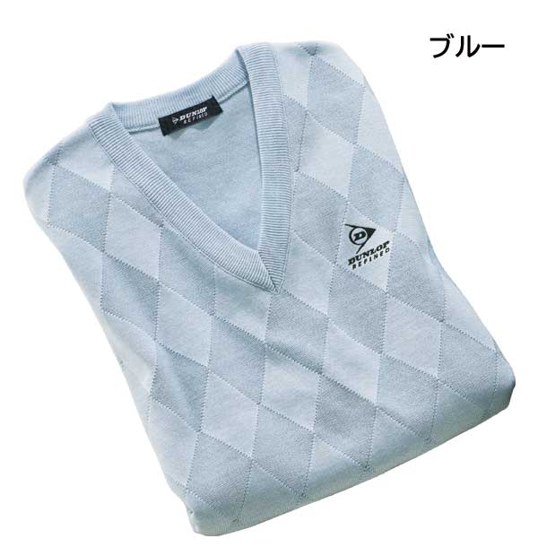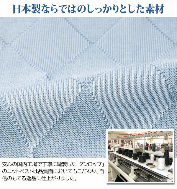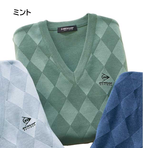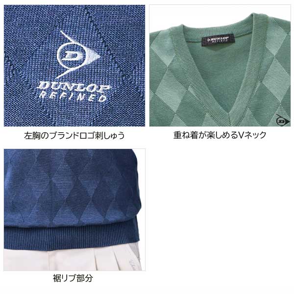 ダンロップ・リファインド DUNLOP REFINED 日本製ダイヤ柄編地ニットベスト 軽量素材 シンプルデザイン メンズ 春夏秋 40代 50代 60代 958038