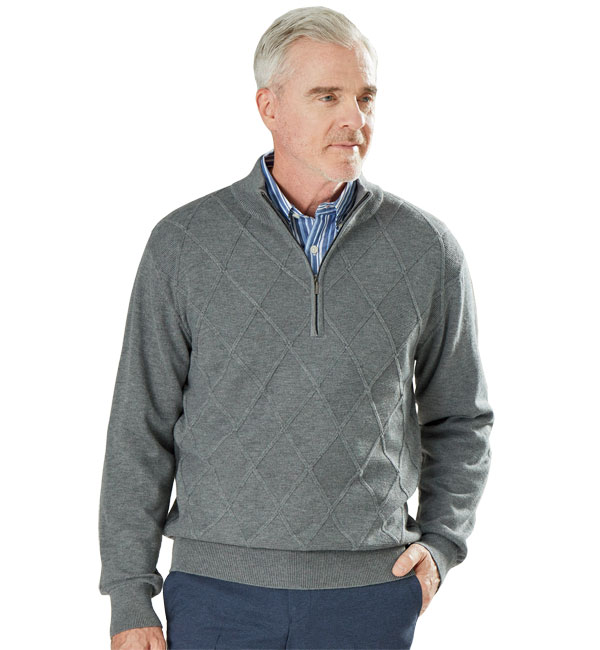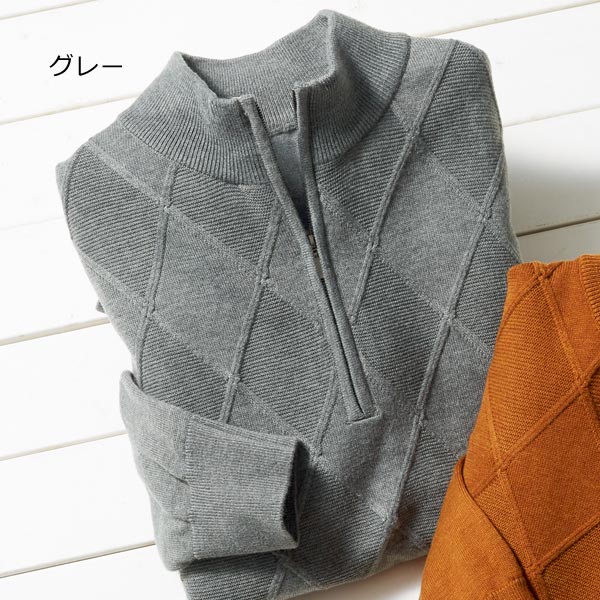 ハーフジップニット ダイヤ柄 肌ざわり良いダイヤ柄ニット素材 メンズ 春秋 40代 50代 60代 958205