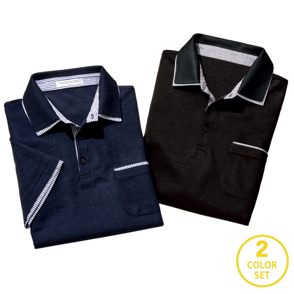 吸水速乾 冷感加工 冷感鹿の子W衿ポロシャツ 同サイズ2色組 普段着 ゴルフウェア メンズ 春夏秋 40代 50代 60代 958240