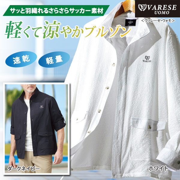 ヴァレーゼ・ウォモ 軽涼ロールアップブルゾン サッカー素材 長袖 日差し対策 速乾軽量 メンズ 春夏秋 40代 50代 60代 958318