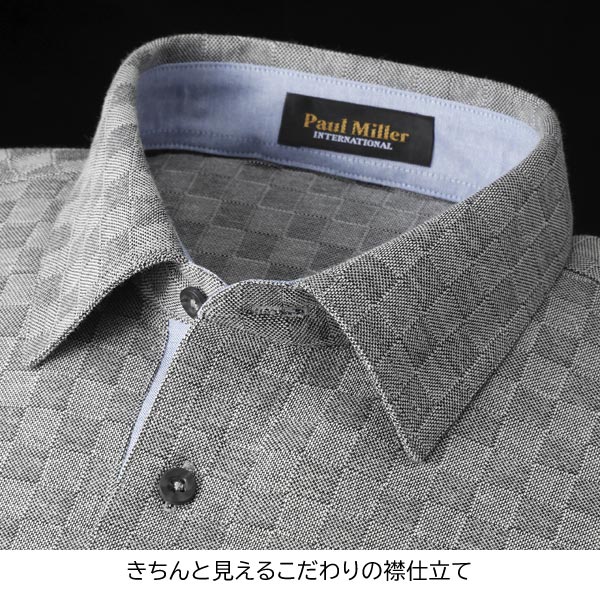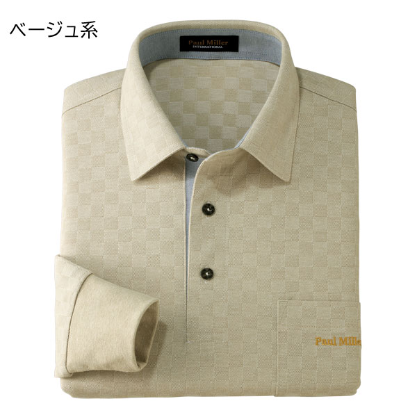 市松柄 長袖ニットシャツ 同サイズ3色組 PAUL MILLER ポールミラー ポロシャツ カジュアルウェア 春夏秋 メンズ 40代 50代 60代 377-4900-HA