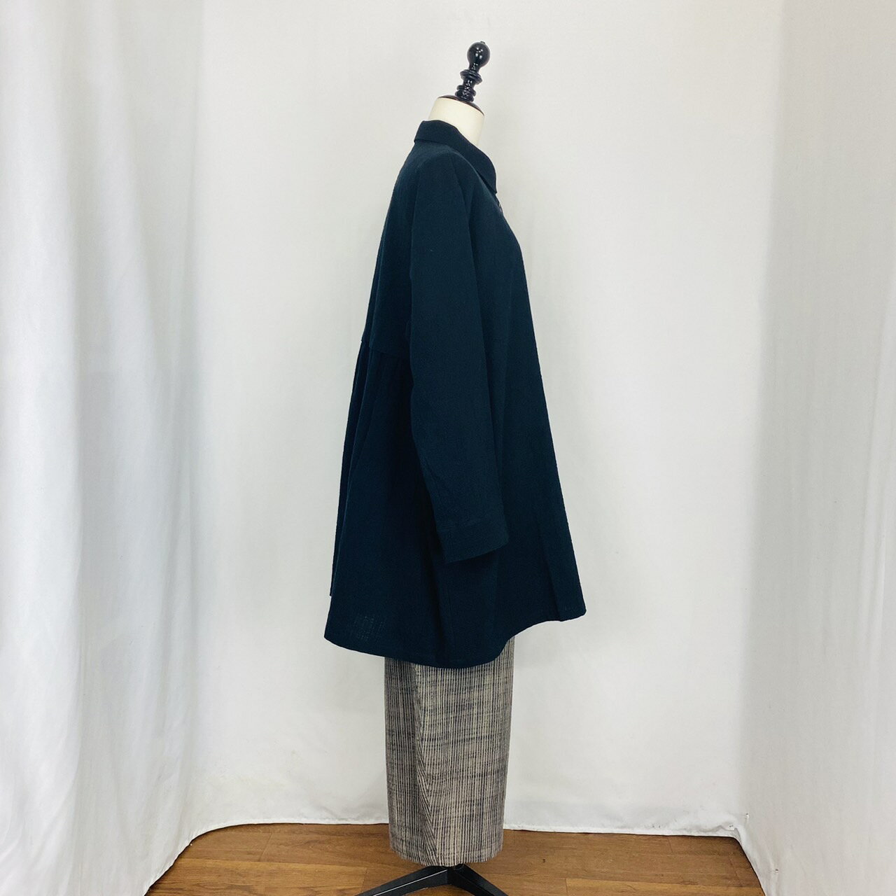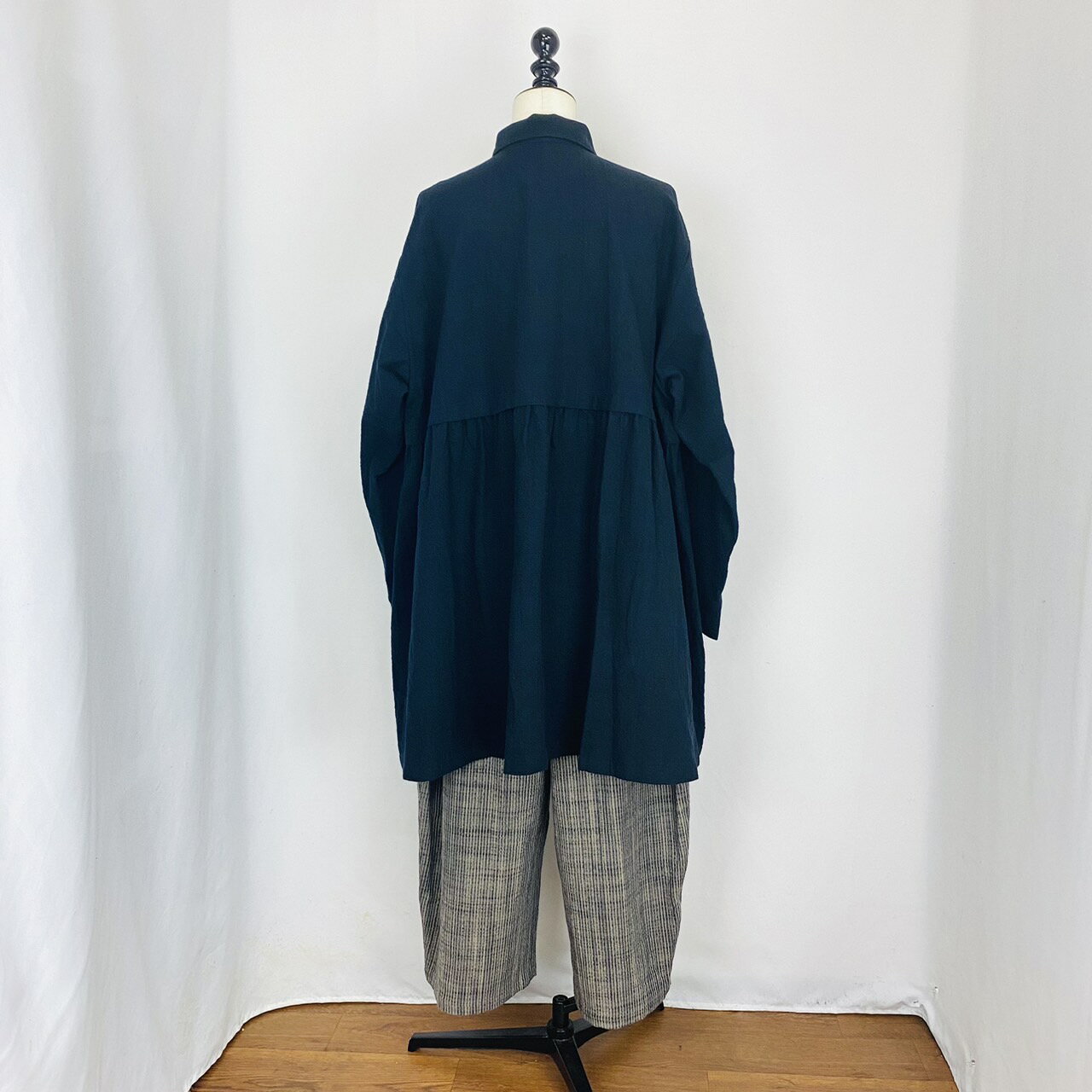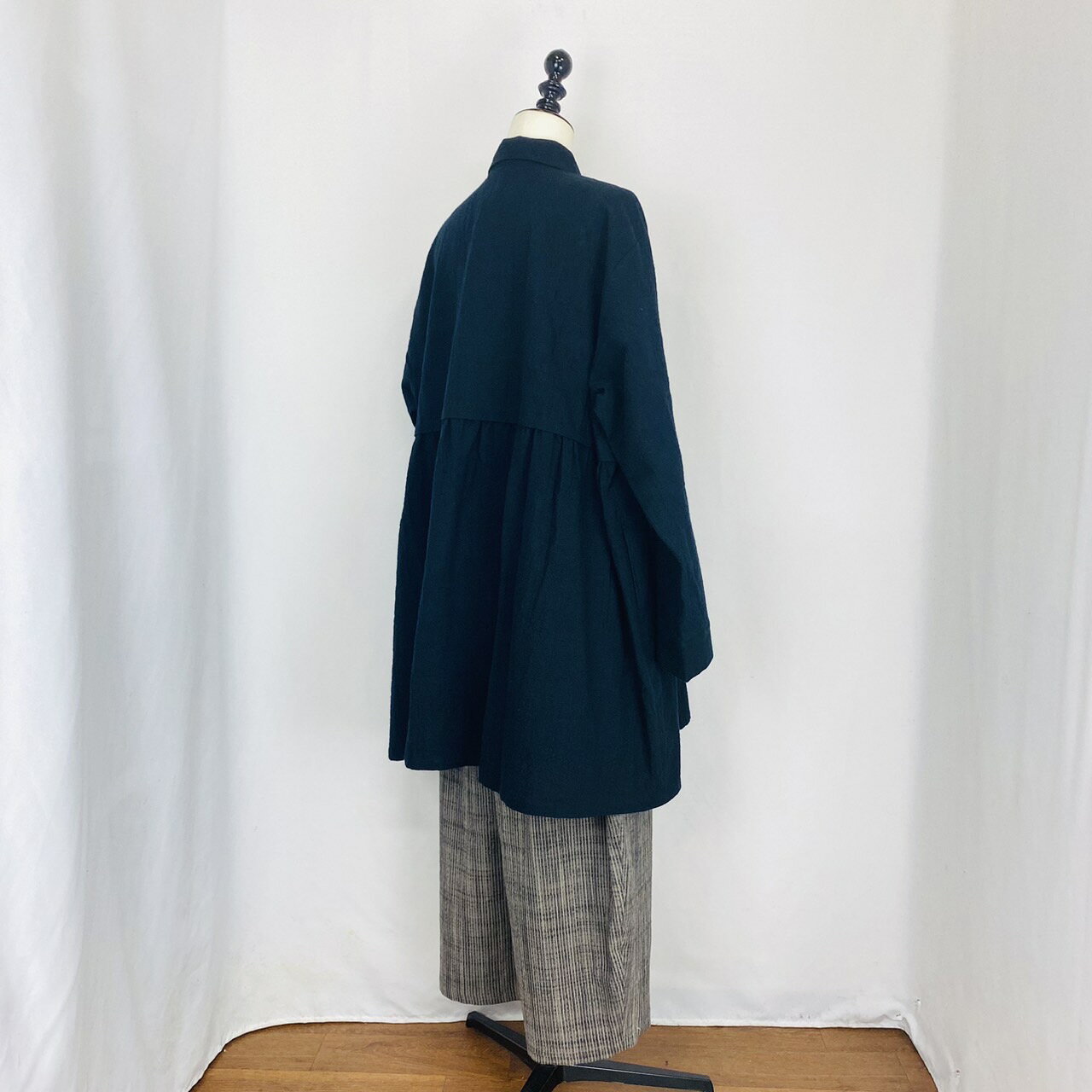 <残り1点>【遠州織物】後ろヨークギャザー ビッグブラウス 黒 ストライプ 遠州 織物 逆スラブ 綿100 オーガニックコットン 天然素材 フリーサイズ 和風 和 ナチュラル 服 春 秋 日本製 ミセス 40代 50代 60代 70代 80代 前田屋 ぷちままん