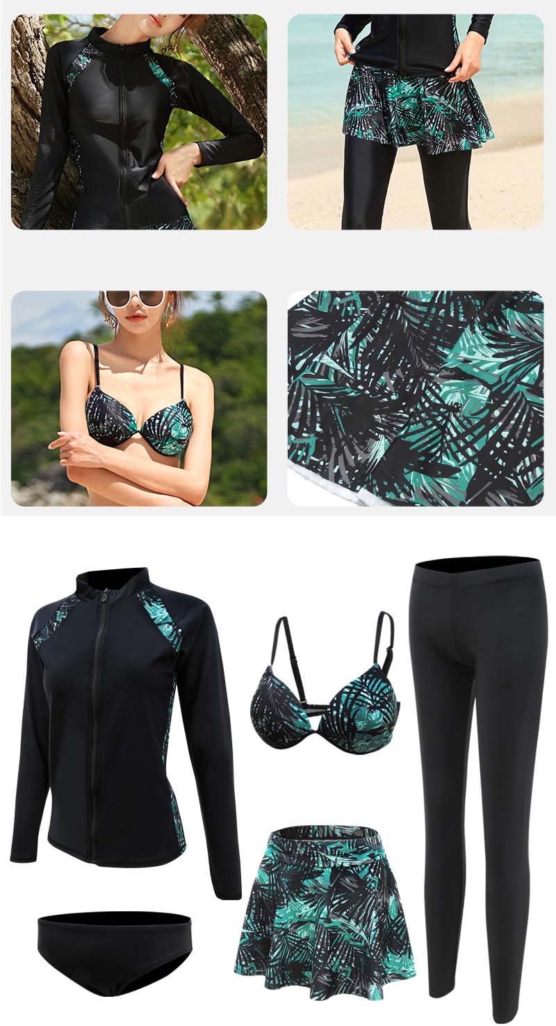 【クーポン利用で→300円OFF】水着 レディース 体型カバー セパレート 上下セットUVカット 女性 女性用 長袖 5点セットラッシュガード 大きいサイズタンキニ フィットネスウェア スポーツウェア 女子 中学生 高校生 水陸両用水着 M L XL 2XL
