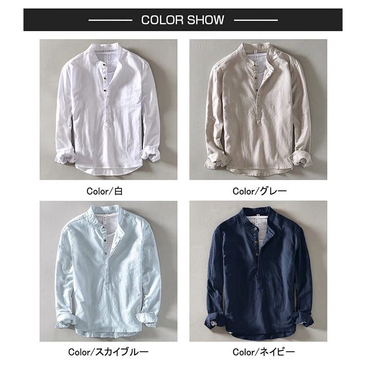 カプリシャツ メンズ シャツ 長袖 リネンシャツ プルオーバーシャツ コットンリネン カジュアルシャツ 綿麻シャツ 長袖シャツ アロハシャツ 白シャツ 涼しい 清涼感 春秋 夏服 夏物 父の日 無地 ちょいワル トップス おしゃれ 40代 50代 60代