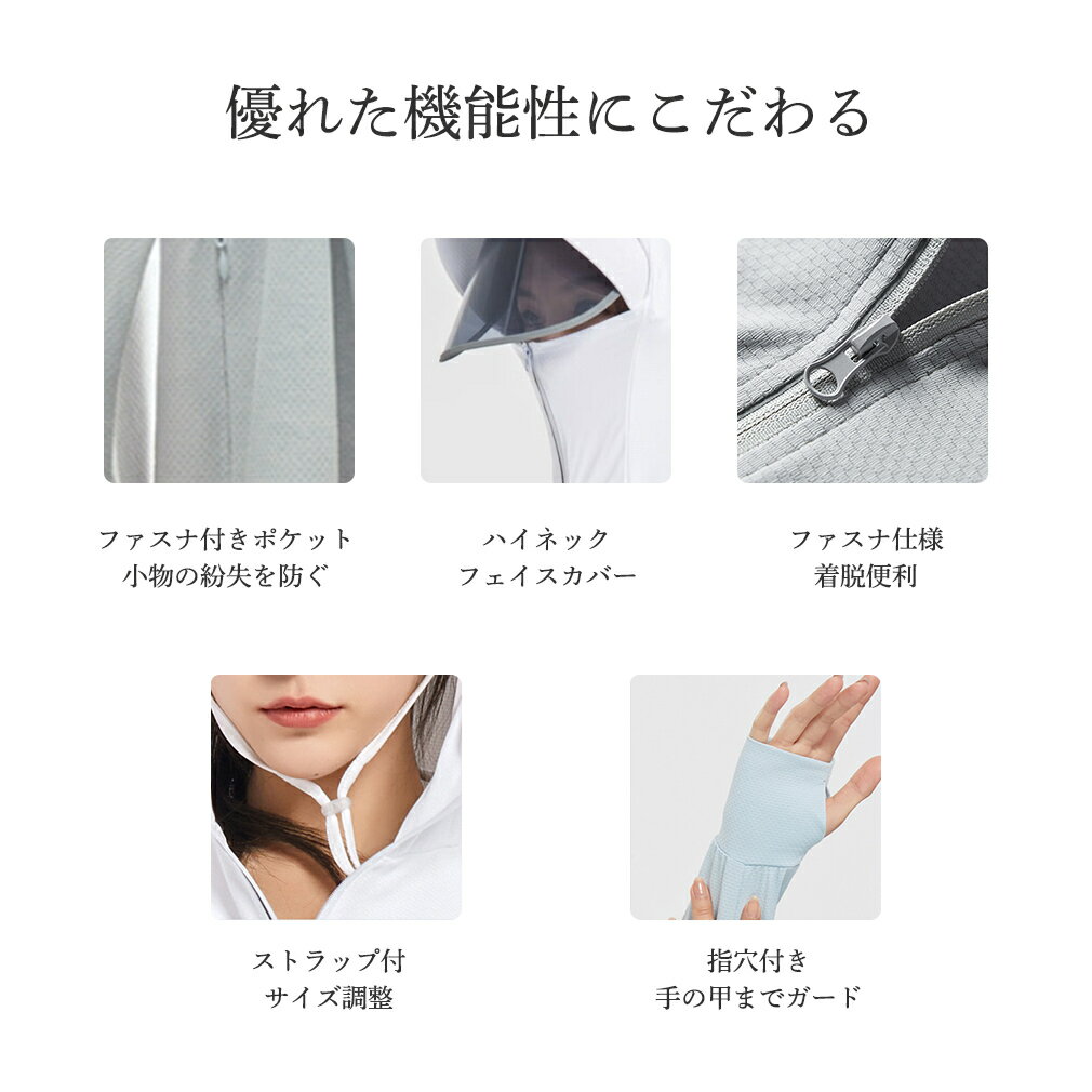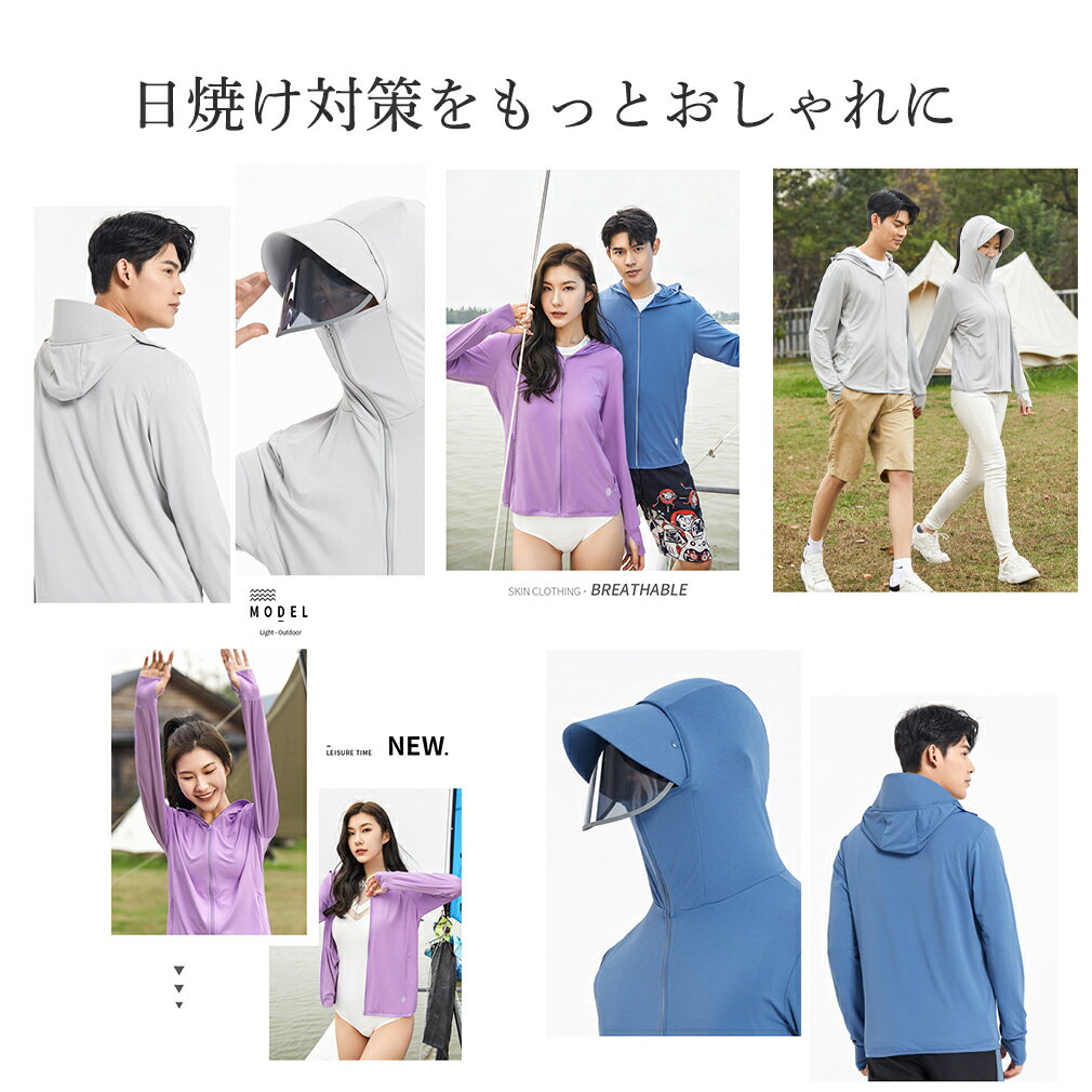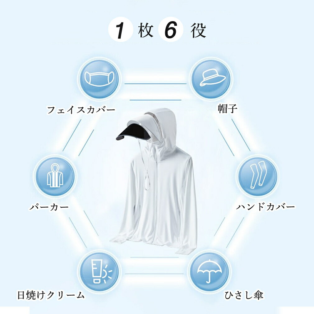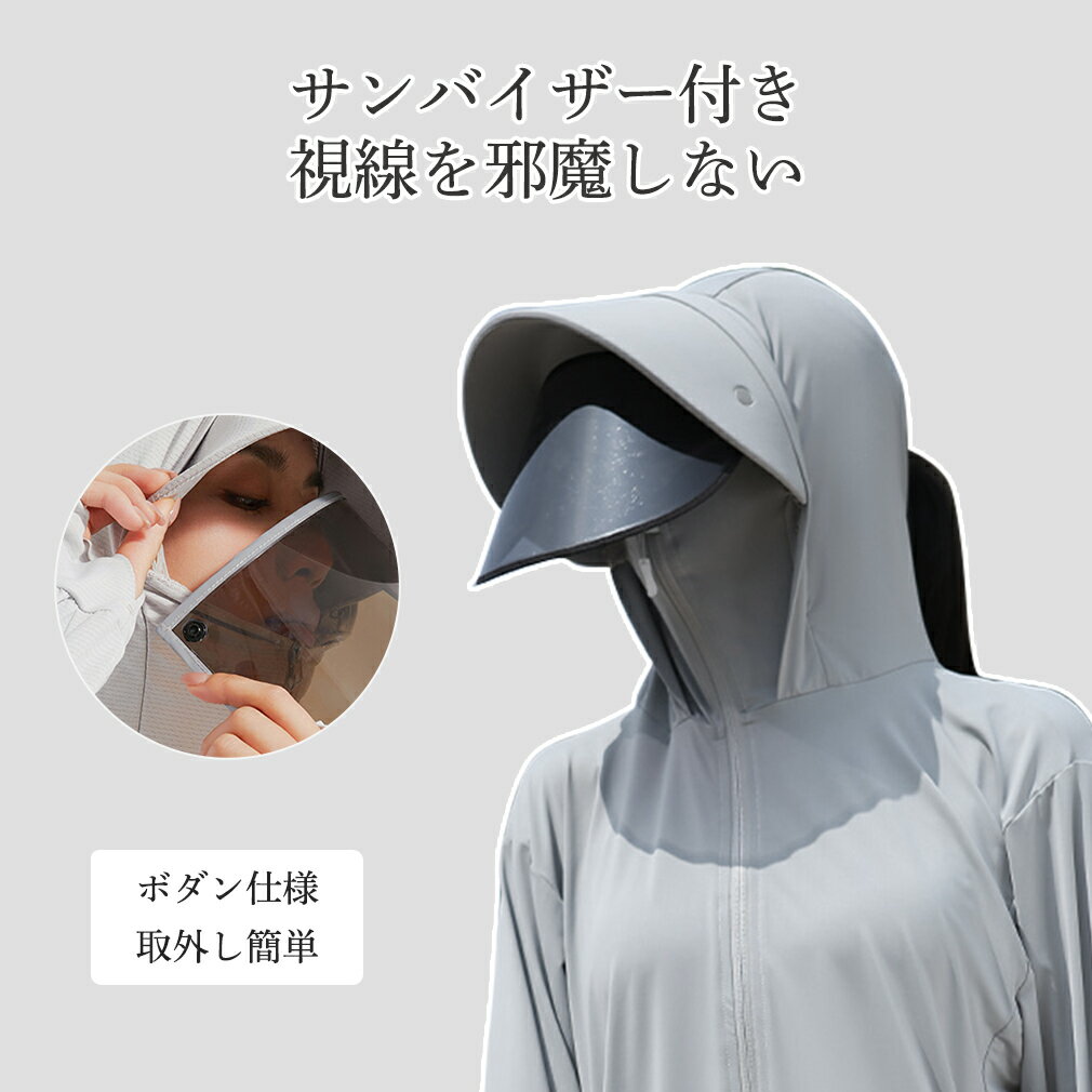 UVパーカー ラッシュガード パーカー 紫外線対策 フェイスカバー サンバイザー フード付き つば広 指穴 冷感 体型カバー 透けない 長袖 分離型 ストラップ サンバイザー M L XL 2XL 3XL 4XL 男女兼用 日焼け防止グッズ ウイルスカット