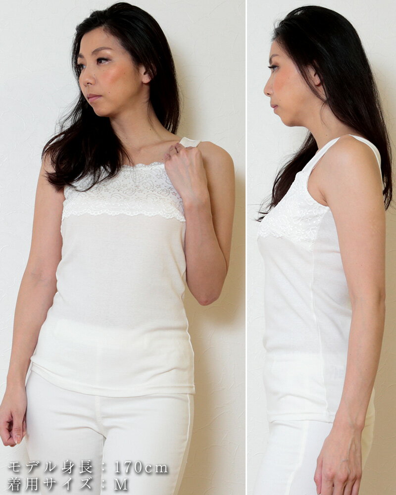 タンクトップ レディース トップス レース M~LL (胸元レース タンク 綿 ノースリーブ 無地 見せる インナー コットン)
