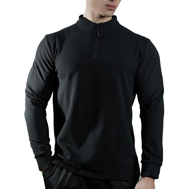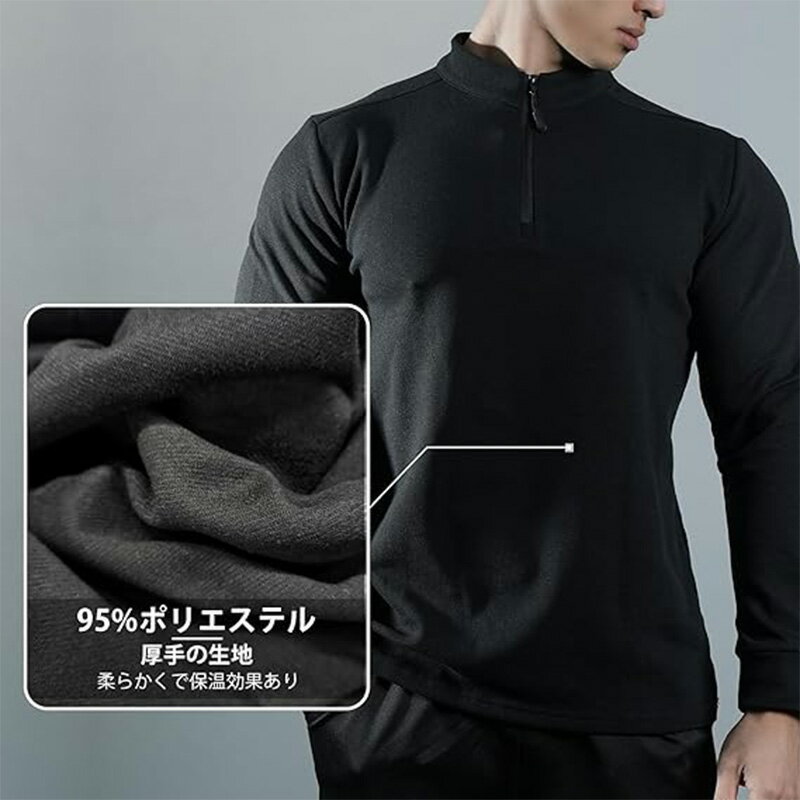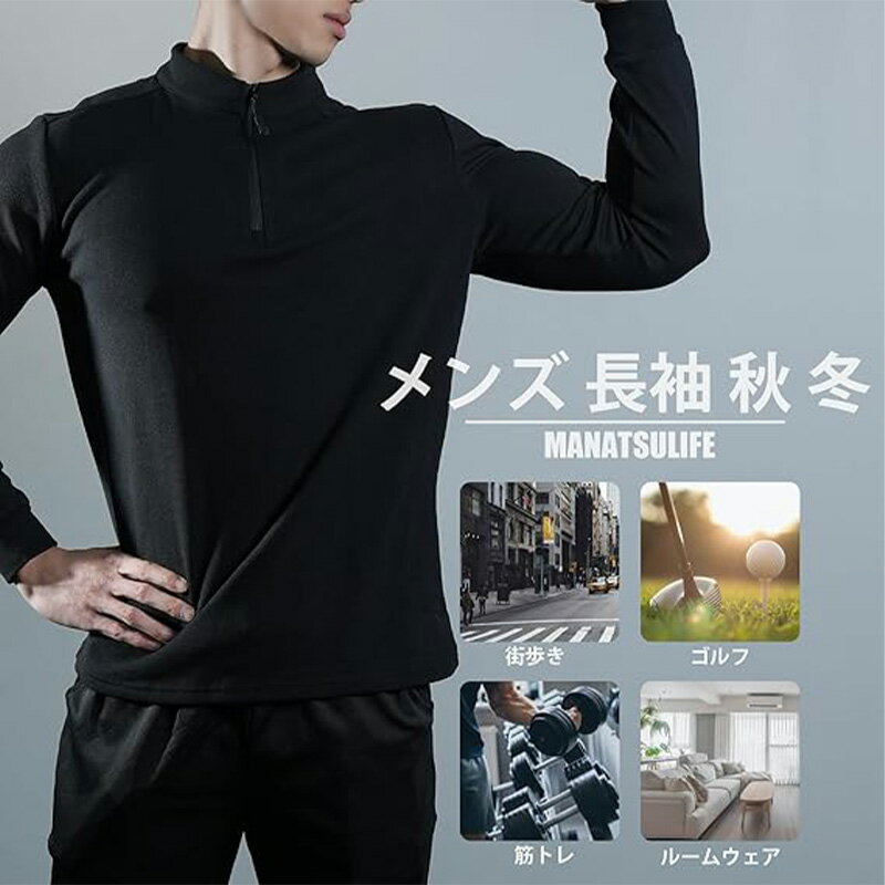 [Manatsulife] ハーフジップ メンズ 長袖 トレーナー ストレッチ 厚手 インナー 筋トレ ジム トレーニングウェア 体型カバー 秋 冬 カッコイイ ルームウェア RT72