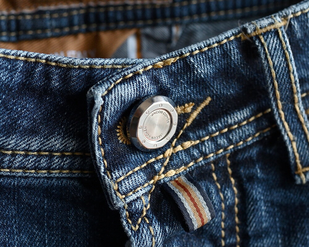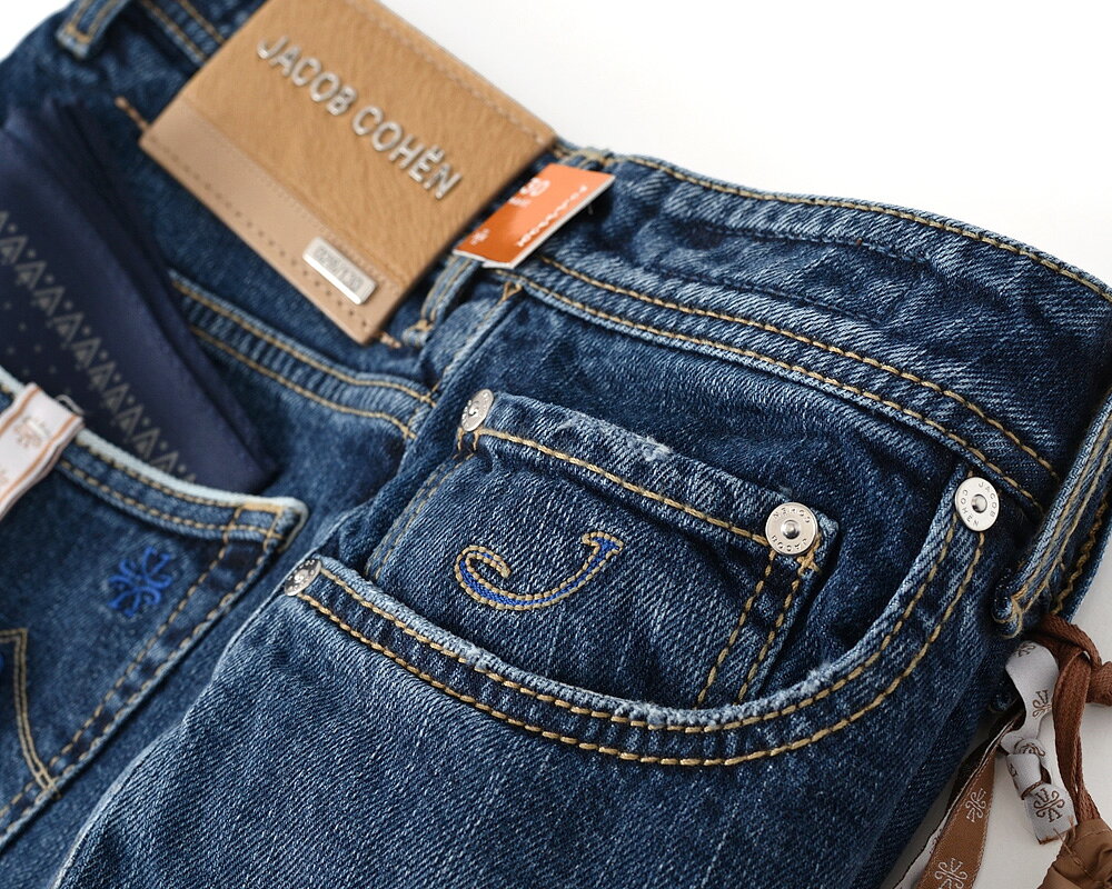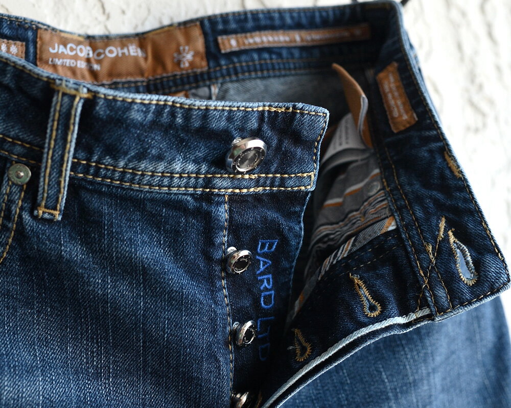 JACOB COHEN ヤコブコーエン / BARD LTD J688 リミテッド ブルージーンズ ・art. UQL0430-S3746-411D ・leather patch. ベージュハラコ ・made in Italy ・リミテッドシリーズ ・ブルーデニム / ストレッチ / セルヴィッチ・国内正規品