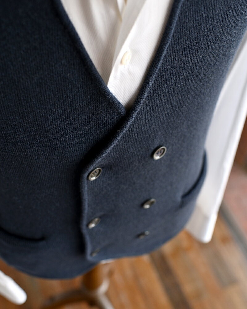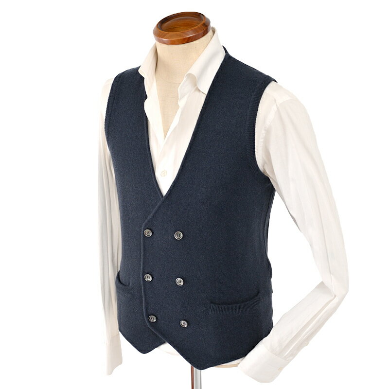 【 SALE 】Settefili Cashmere セッテフィーリ カシミア / カシミヤ ニットジレ ・art. 134/1 DP. Gilet con bottoni Sartoria ・col. LIGHT NAVY ライトネイビー ・made in Italy ・国内正規品