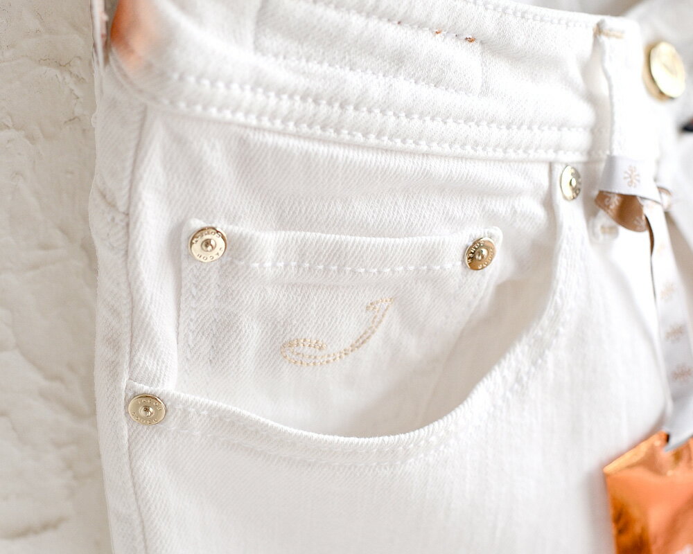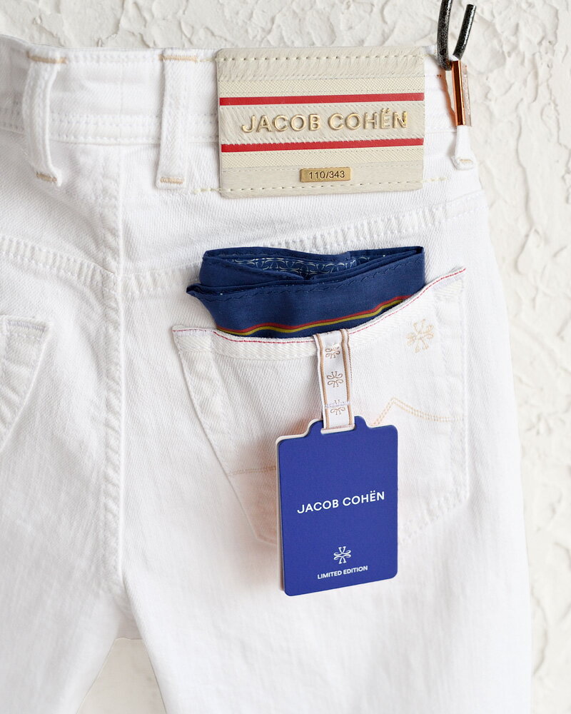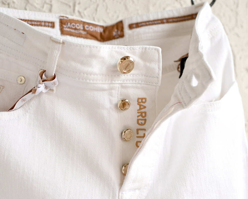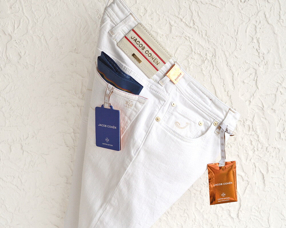 JACOB COHEN ヤコブコーエン ・BARD LTD J688 リミテッド ホワイトジーンズ ・art. UQL0431-S3986-741D ・leather patch. オフホワイトハラコ ・made in Italy ・リミテッドシリーズ ・ストレッチ / セルヴィッチ・国内正規品