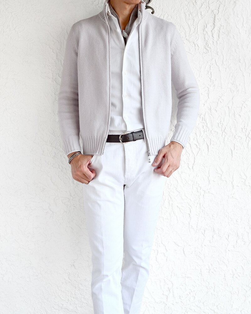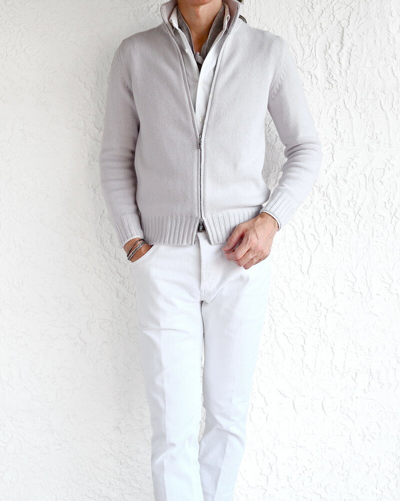 Settefili Cashmere セッテフィーリ カシミア / カシミヤ 3プライ ジップアップカーディガン ・art. 149/3 ZIPST ・col. SALT ソルトグレー ・made in Italy