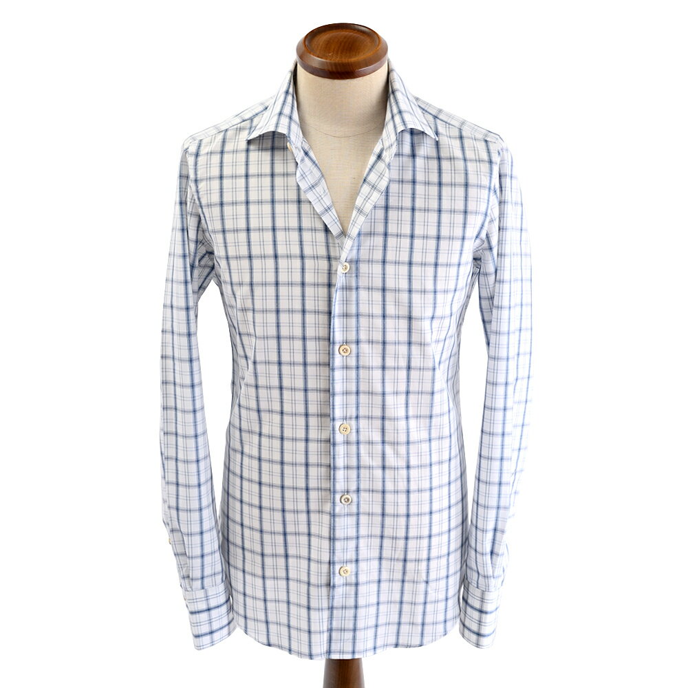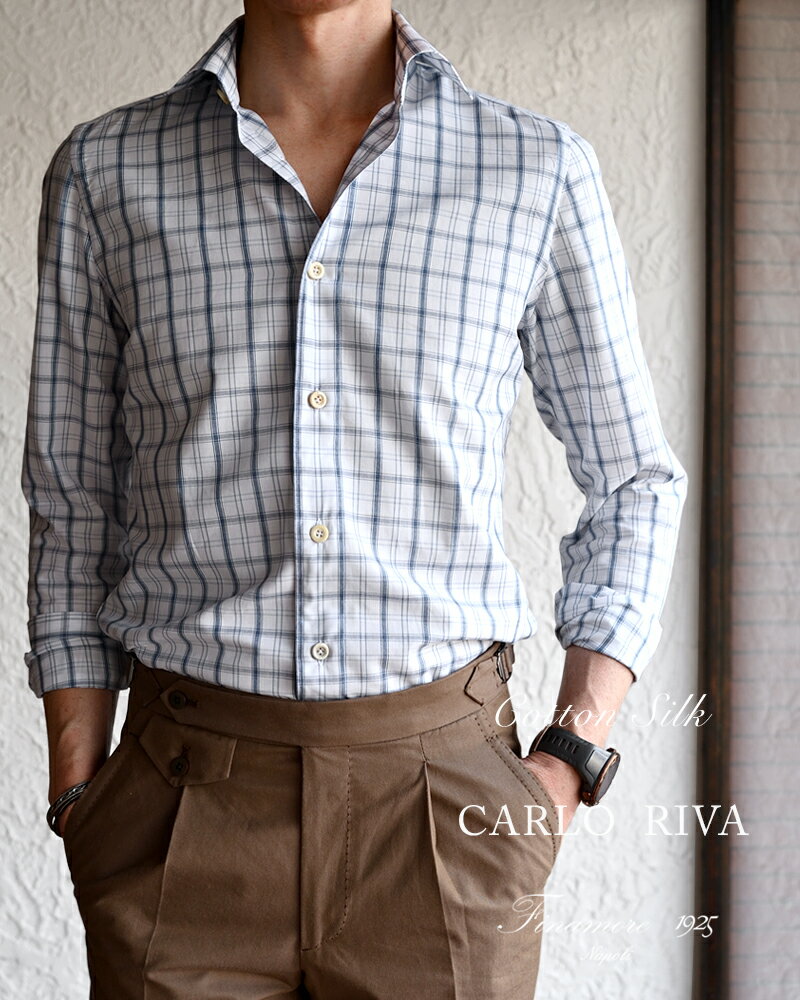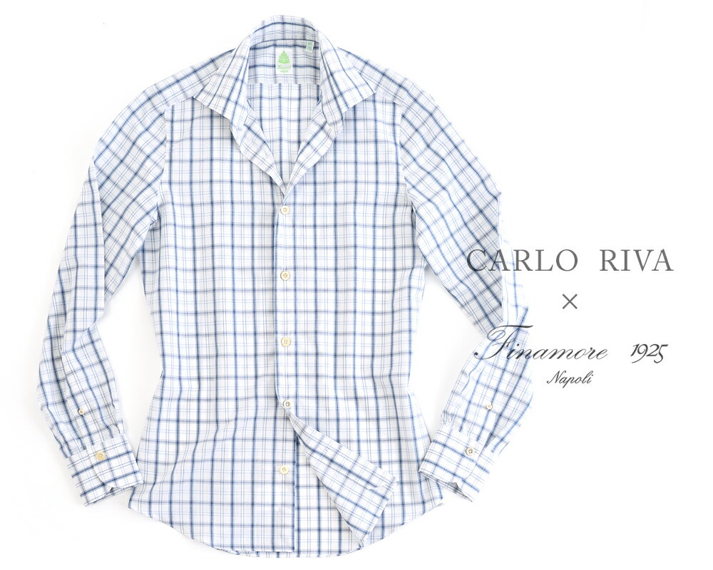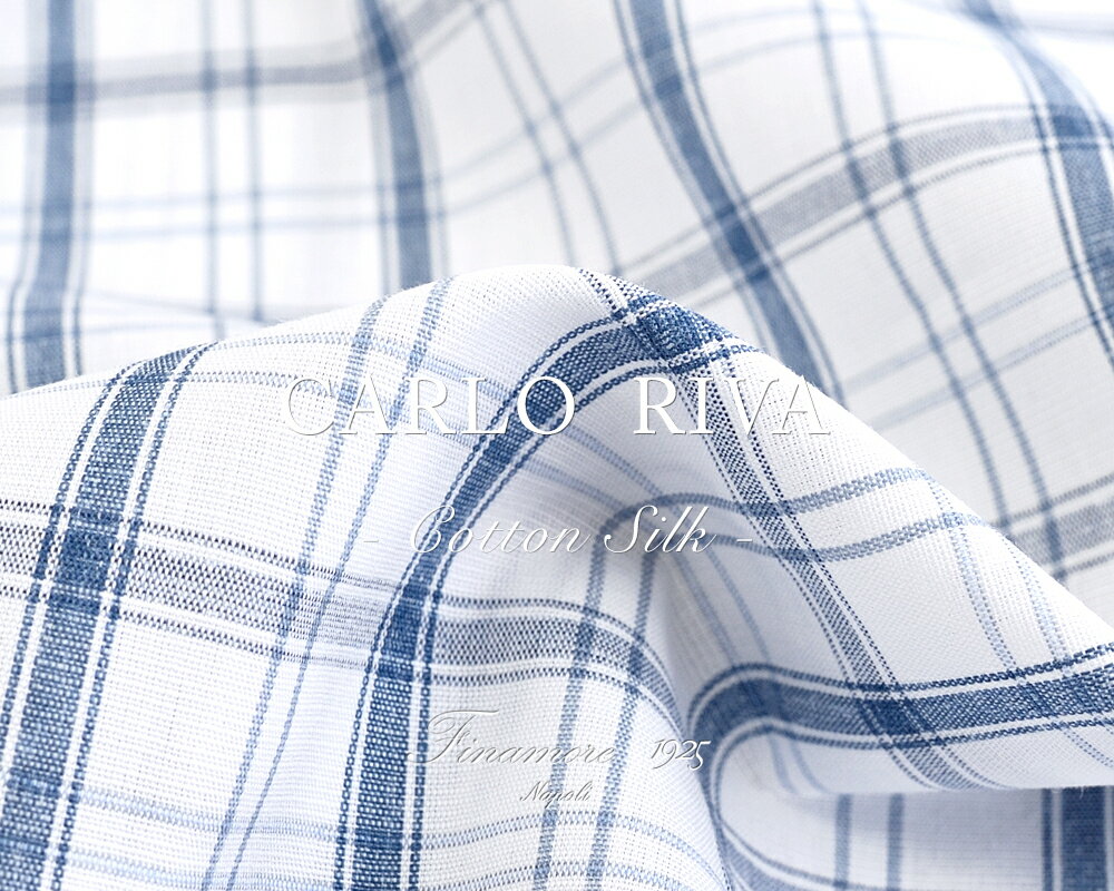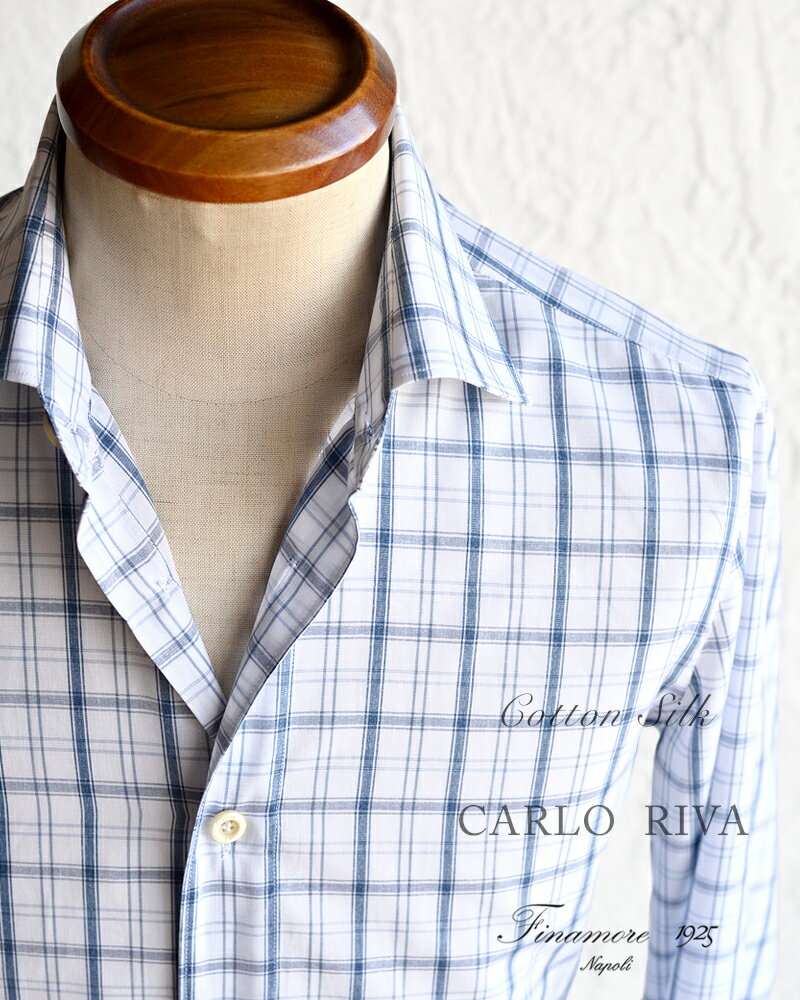 Finamore フィナモレ カルロリーバ・コットンシルク チェックシャツ ・collar. LUIGI ・mod. BALI ・art. P5001 / 04 ・col. WHITE × NAVY CHECK ネイビーチェック ・fabric. CARLO RIVA ・made in Italy