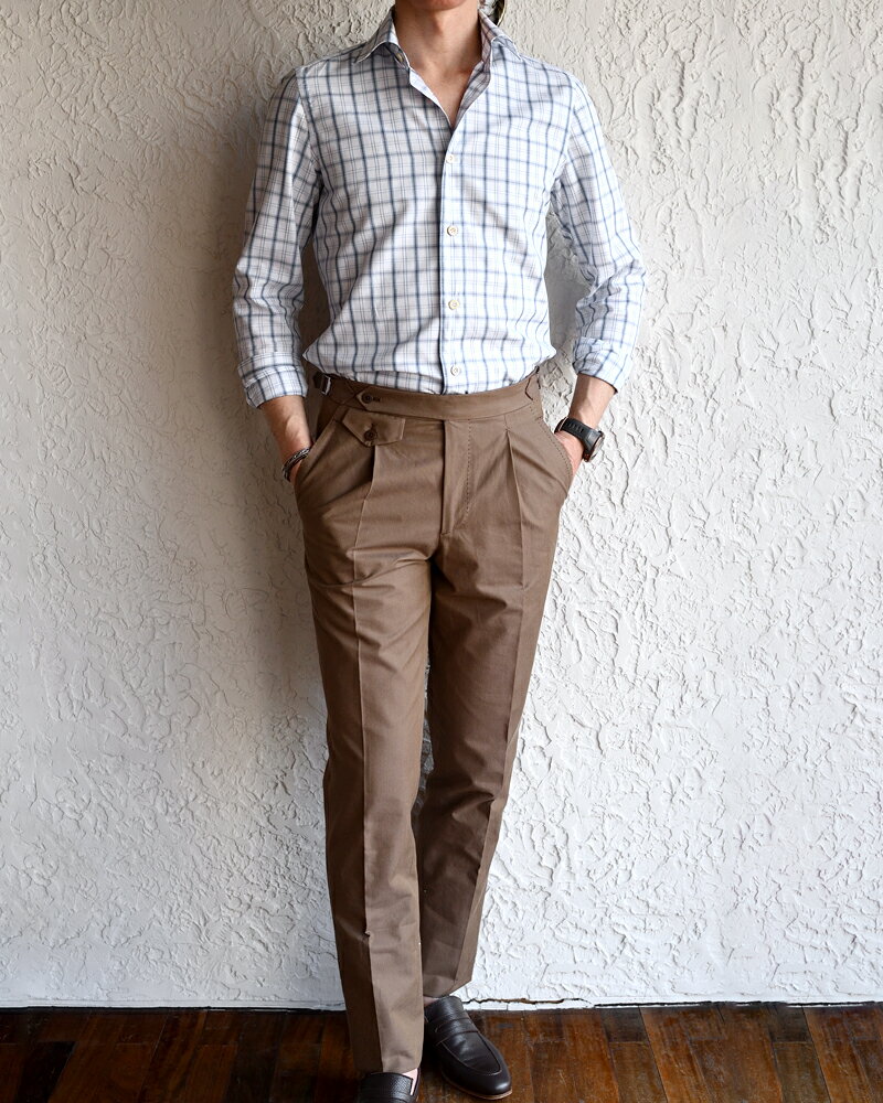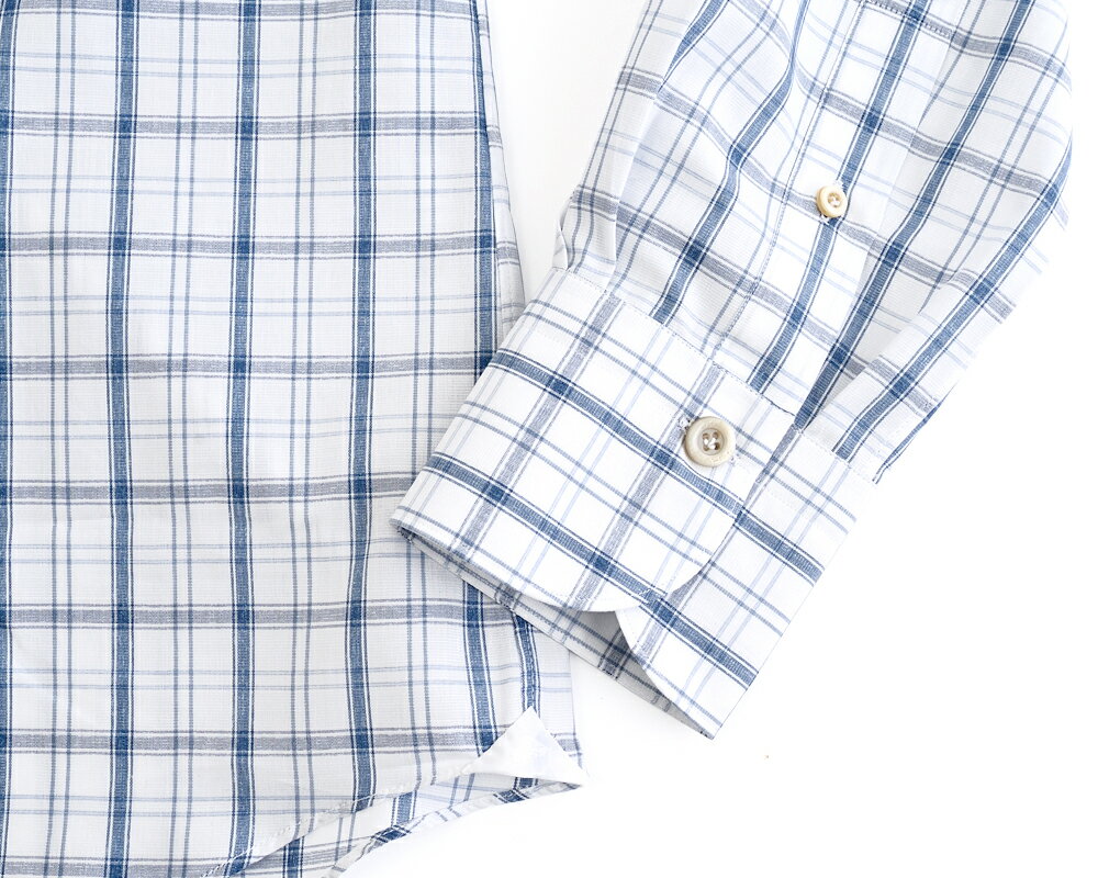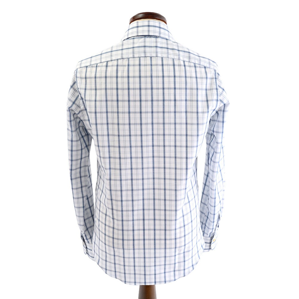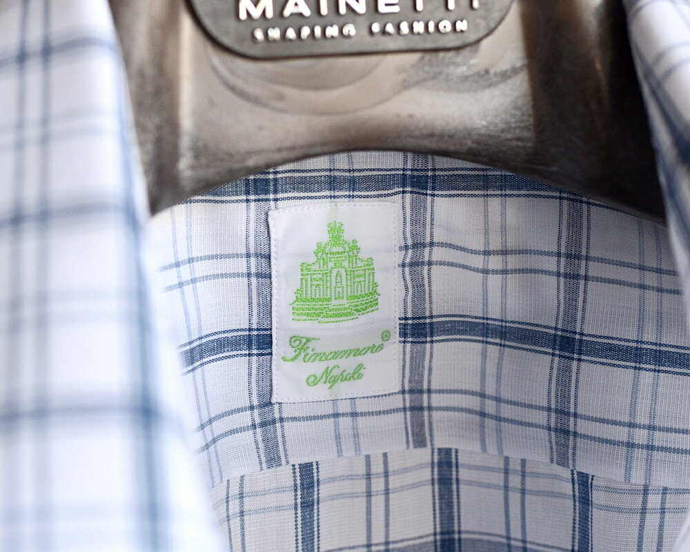 Finamore フィナモレ カルロリーバ・コットンシルク チェックシャツ ・collar. LUIGI ・mod. BALI ・art. P5001 / 04 ・col. WHITE × NAVY CHECK ネイビーチェック ・fabric. CARLO RIVA ・made in Italy