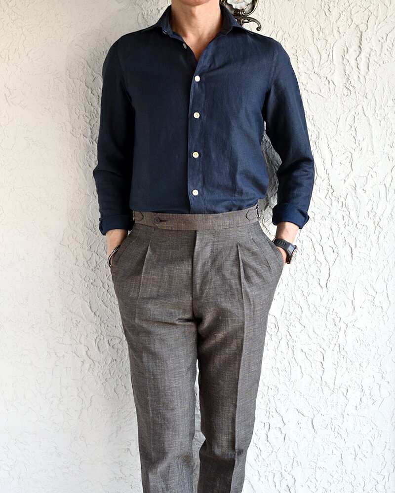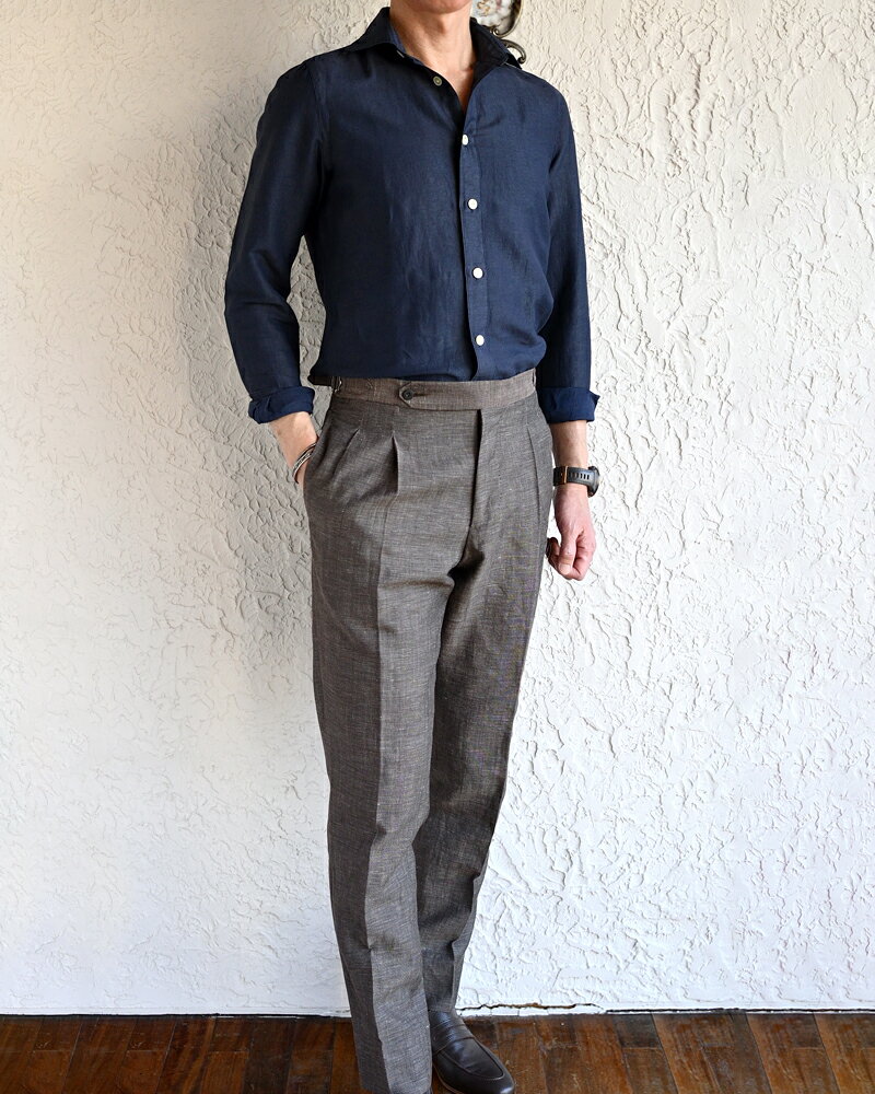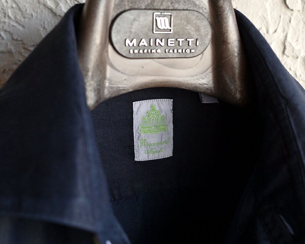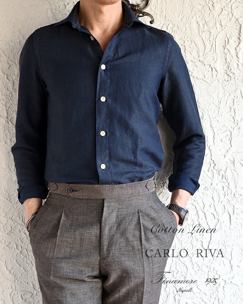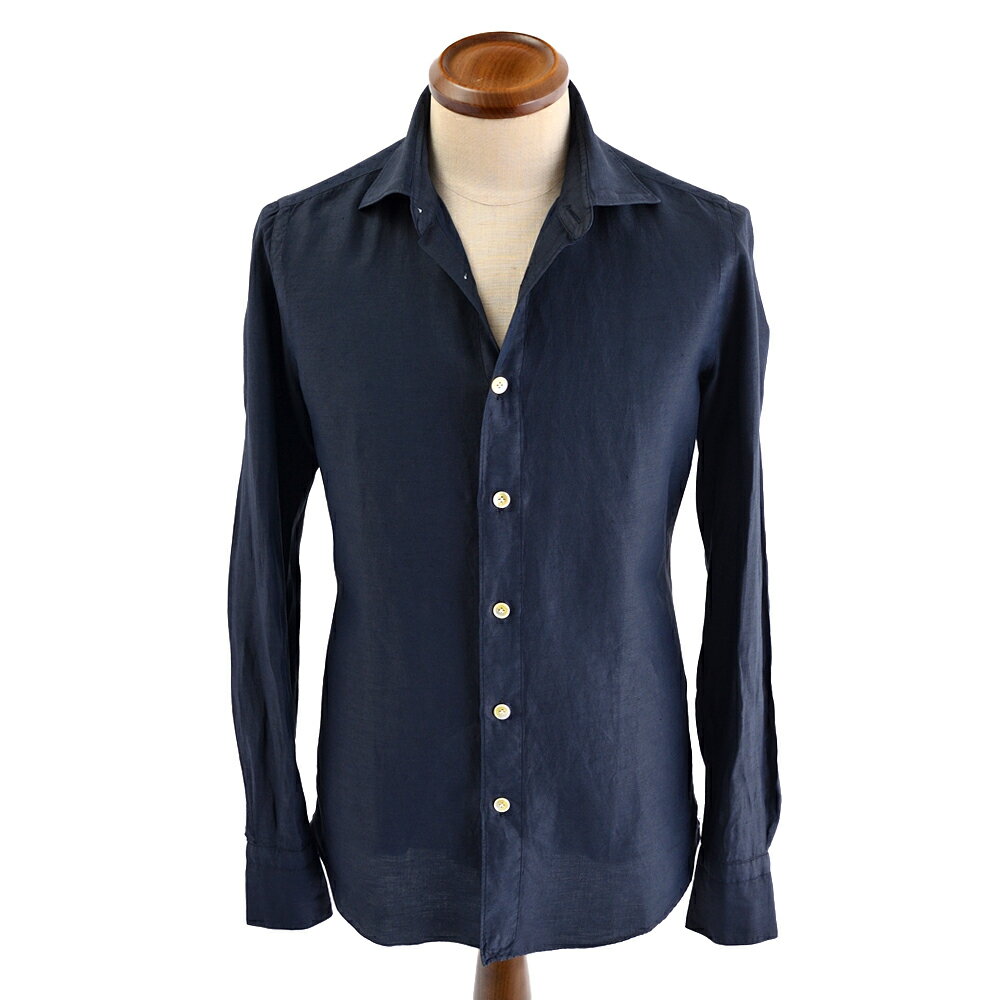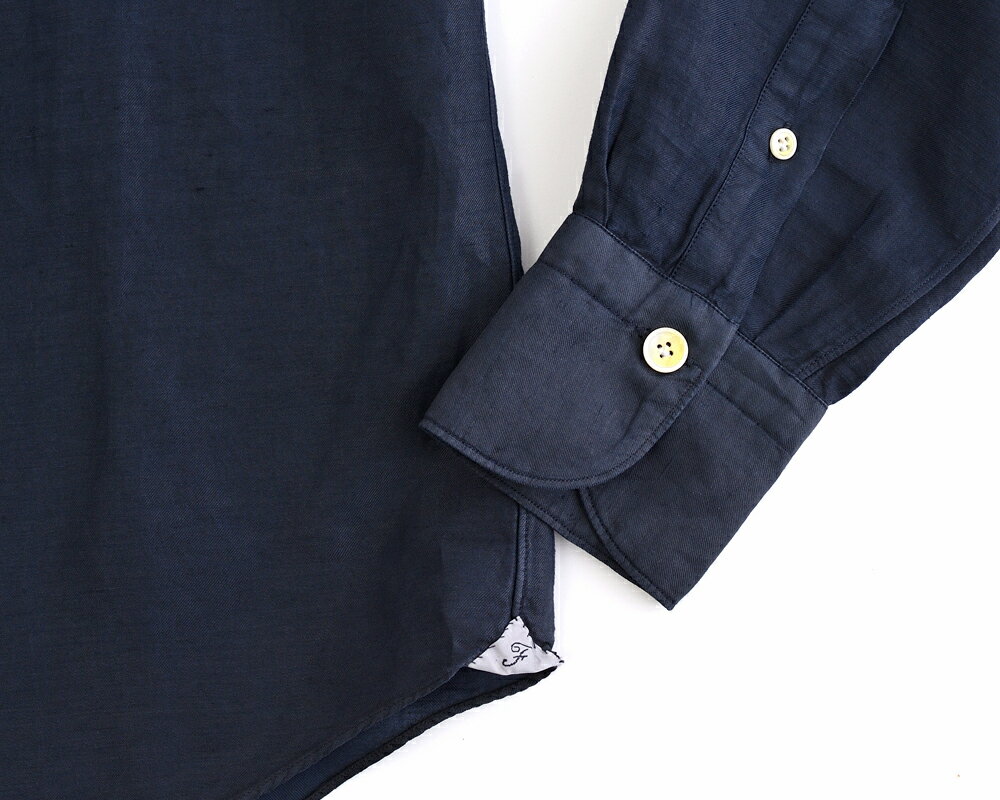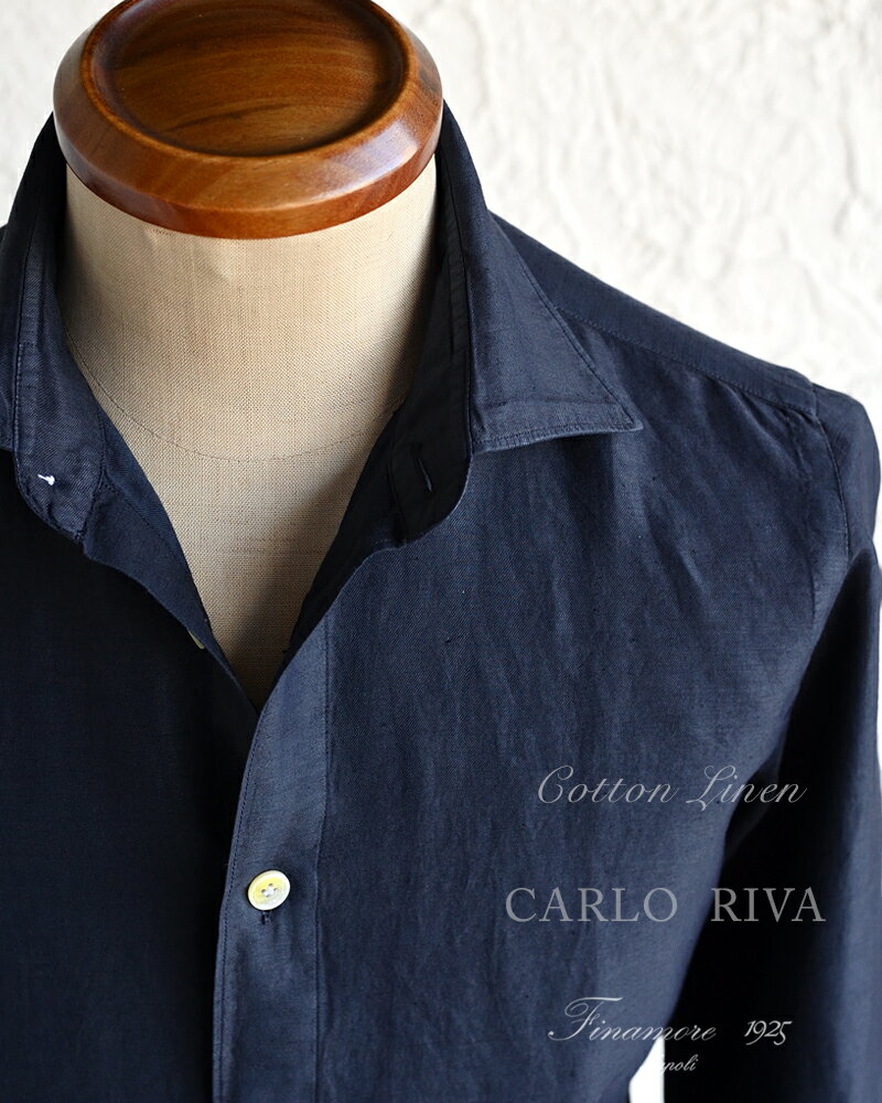 Finamore フィナモレ カルロリーバ・180/2 コットンリネンシャツ・ガーメントダイ ・collar. LUIGI ・mod. BALI ・art. P5000 / 14 ・col. NAVY ネイビー ・fabric. CARLO RIVA ・made in Italy