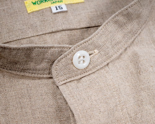 ワーカーズ WORKERS Band Collar Shirt, Black Linen Ecru Linen バンドカラーシャツ リネン