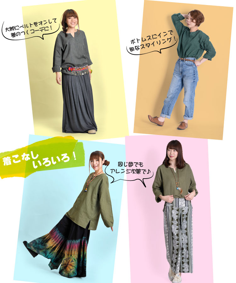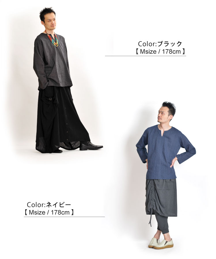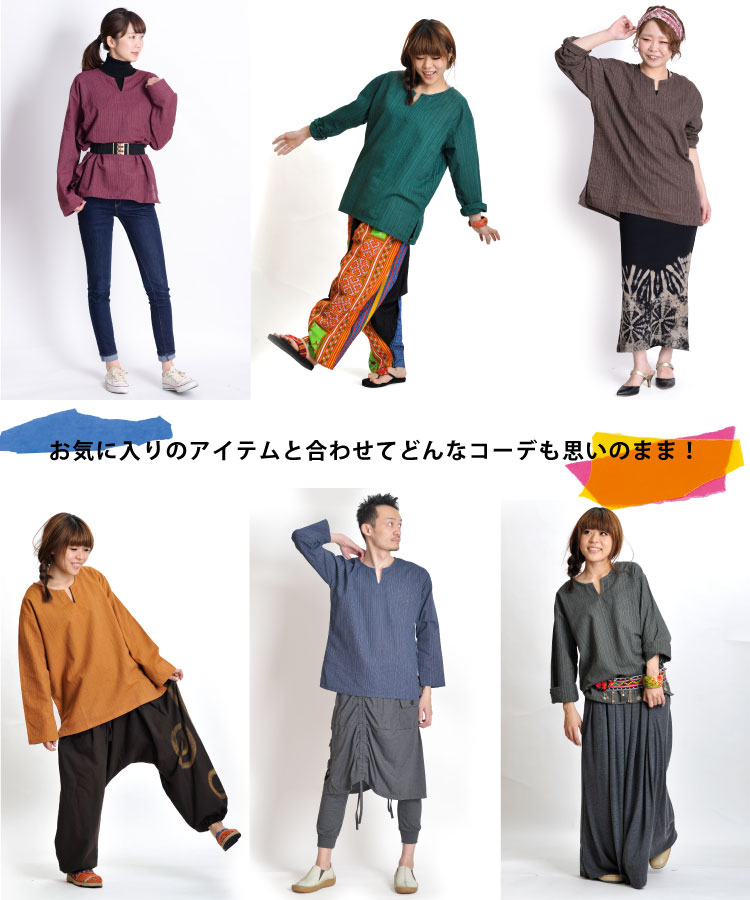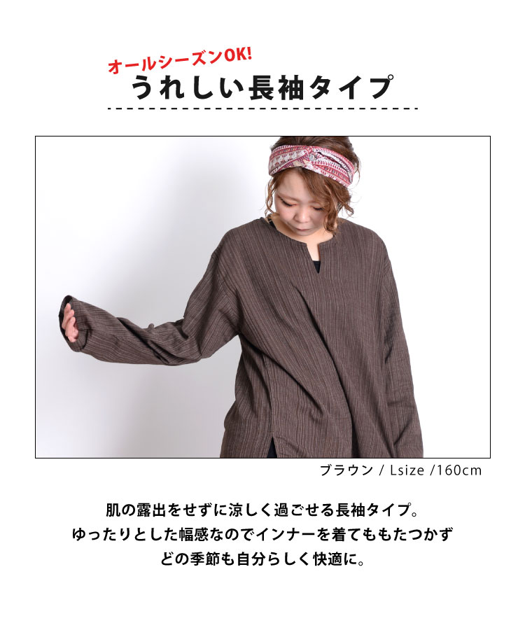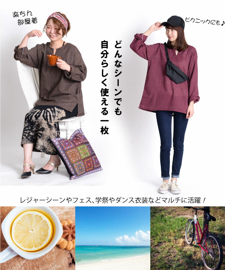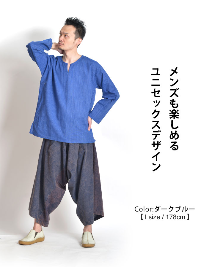 Tシャツ カットソー メンズ レディース 長袖 ユニセックス エスニック アジアン ファッション シャツ ブラウス 大きいサイズ トップス 春 夏 キーネック 長袖カットソー ロンT ストライプ織 プルオーバー チュニック オーバーサイズ 個性的 ロングスリーブ 綿 秋 冬