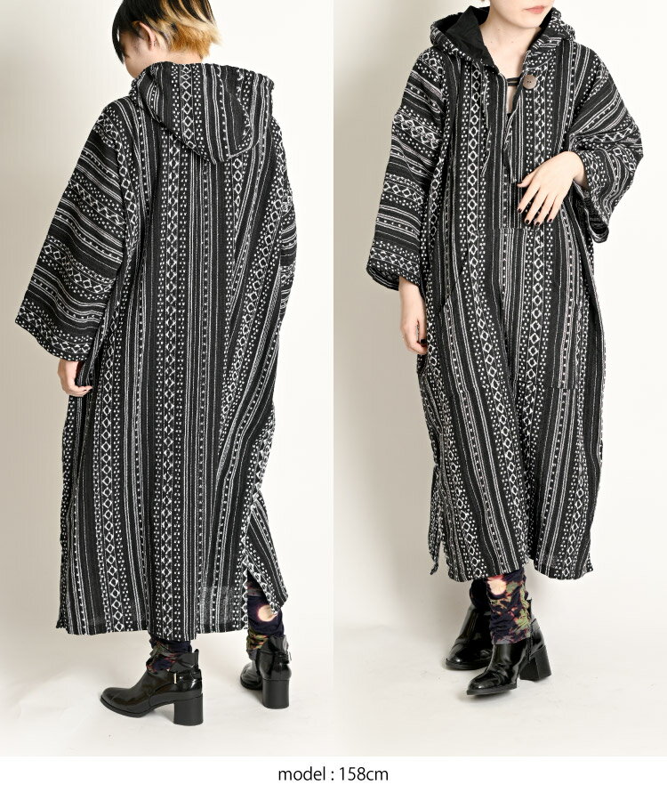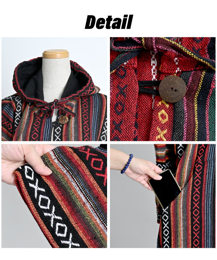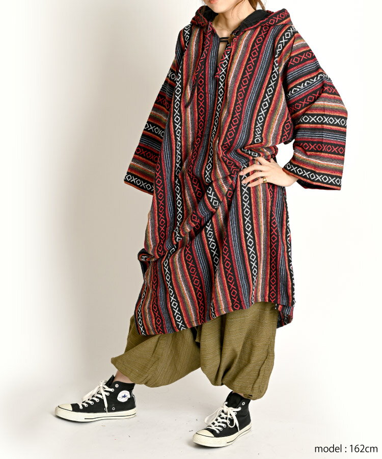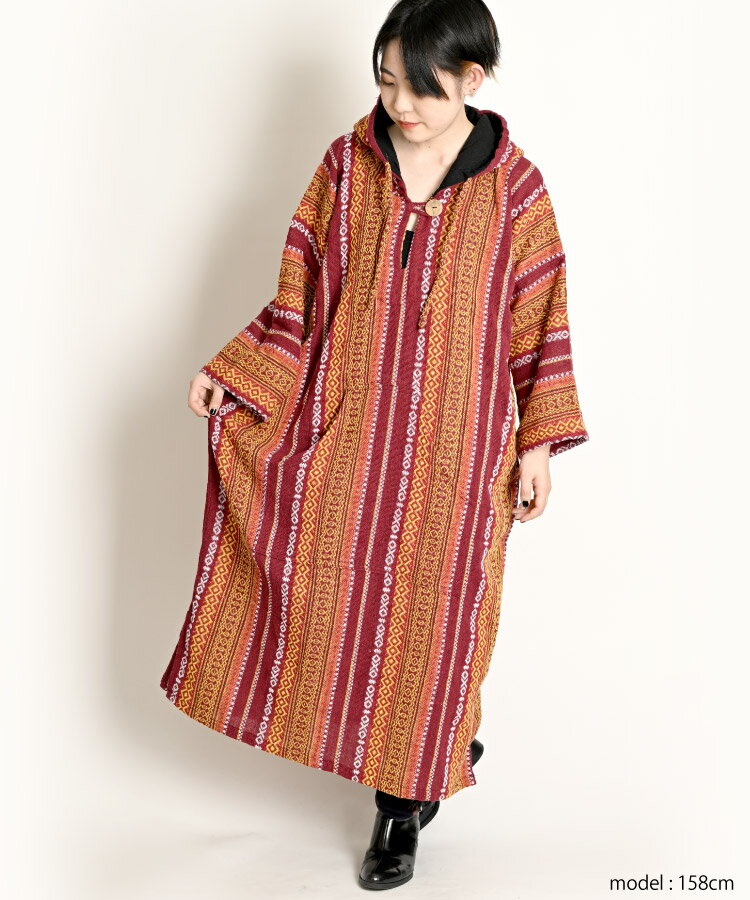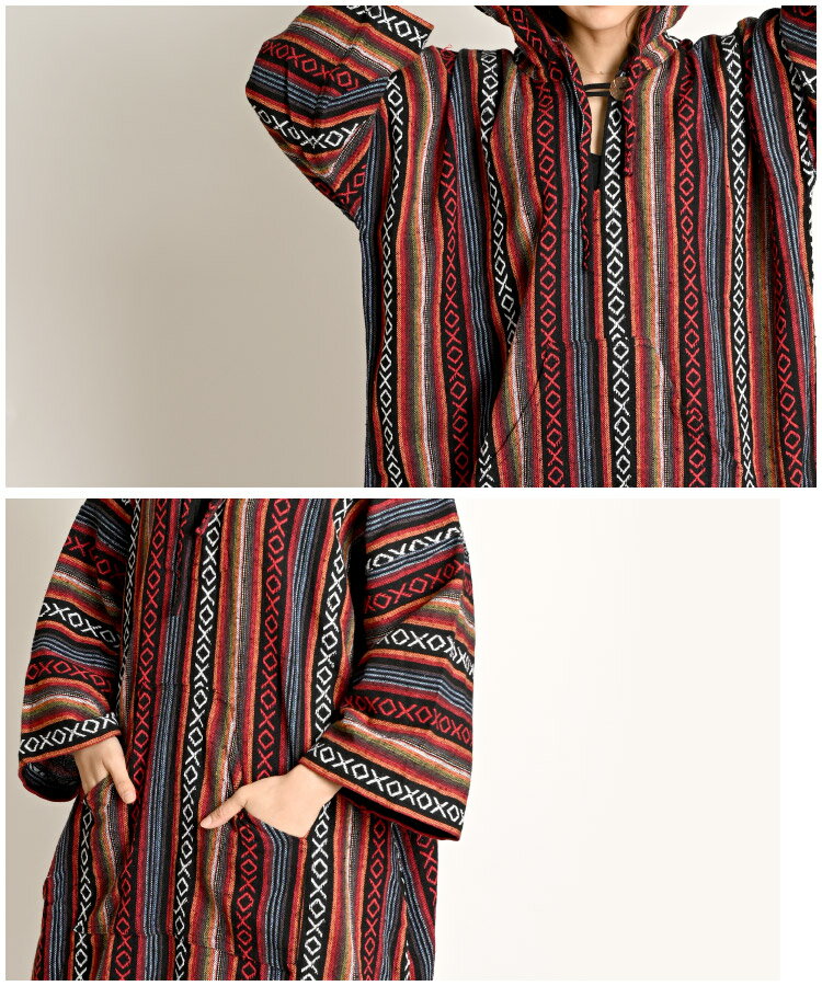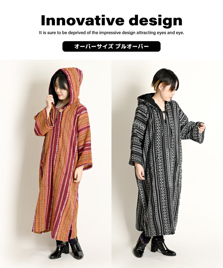 パーカー ロングパーカー メンズ レディース 大きいサイズ 長袖 プルオーバー 柄 ネイティブ柄 ワンピース トレーナー フーディー ビッグ ポンチョ アジアン エスニック ファッション 刺繍 秋 冬 服 ーn_marai