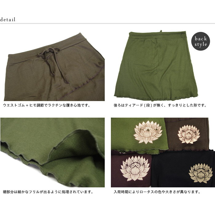 送料無料 エスニック ミニスカート ティアードスカート ストレッチ タイダイ染め ロータス 蓮 花 無地 ワンポイント レディース ファッション アジアン オーバースカート 山ガール ヨガウェア 春 夏 秋 冬【メール便可 1.5cm】【1】