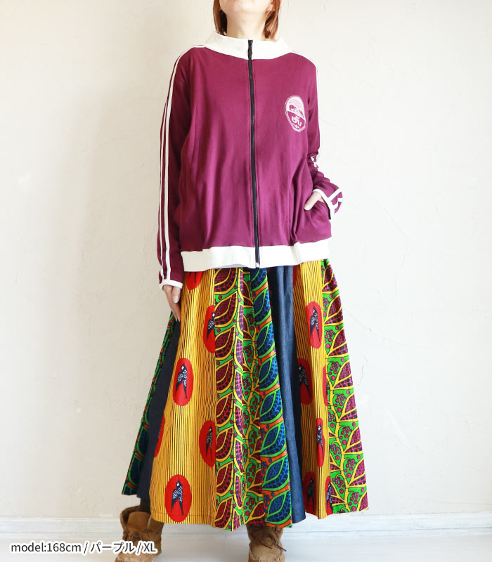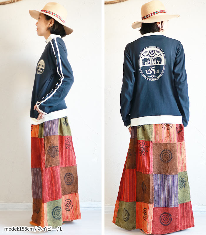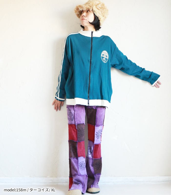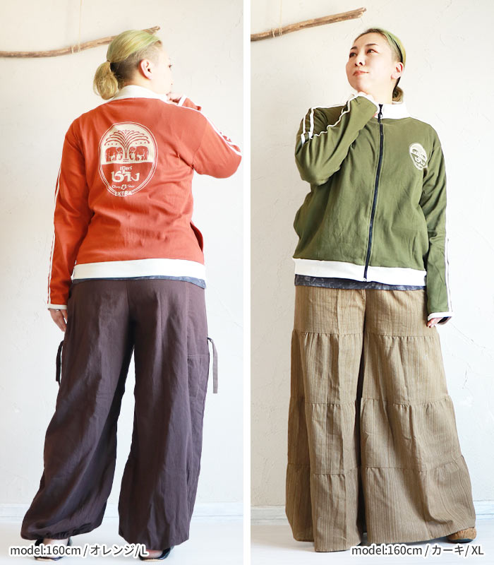 ジャージ 上 スウェットトレーナー 長袖 トップス ジップアップ パーカー フードなし 綿 エスニック ファッション アジアン ロゴ ビアチャン レディース メンズ 男女兼用 ユニセックス ゆったり 【メール便可3cm】